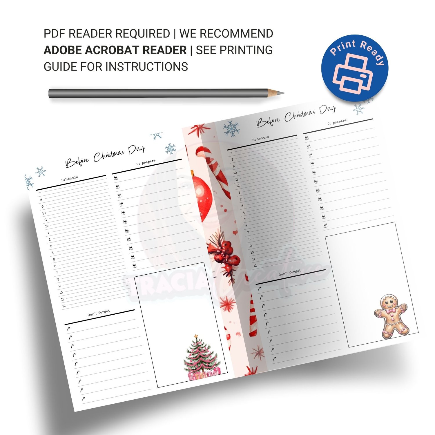 Before Christmas Day Planner Insert - Printable Digital Download PDF