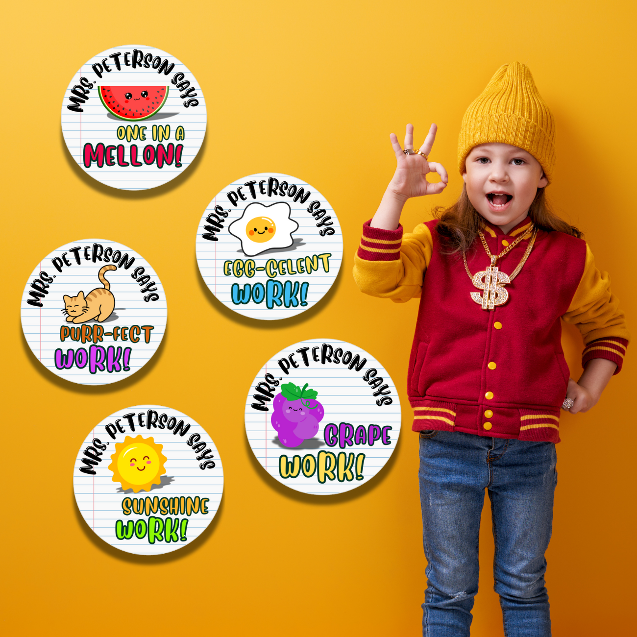 Add a personal touch to your classroom rewards with these adorable, customizable stickers! Perfect for motivating students and recognizing their achievements, each sticker can be personalized with your name for a truly special reward system. These colorful designs will brighten your students’ day and encourage them to keep doing their best.