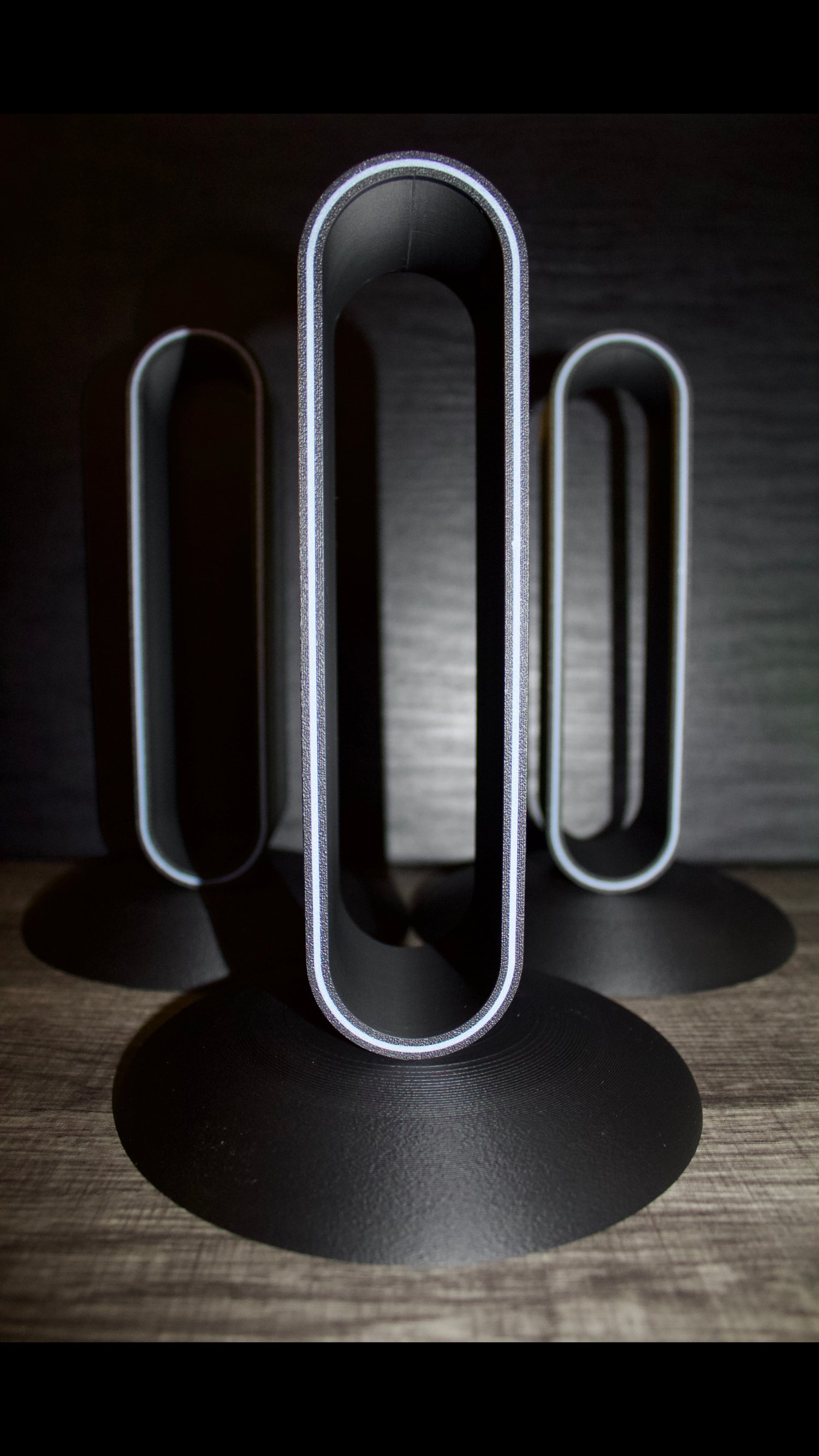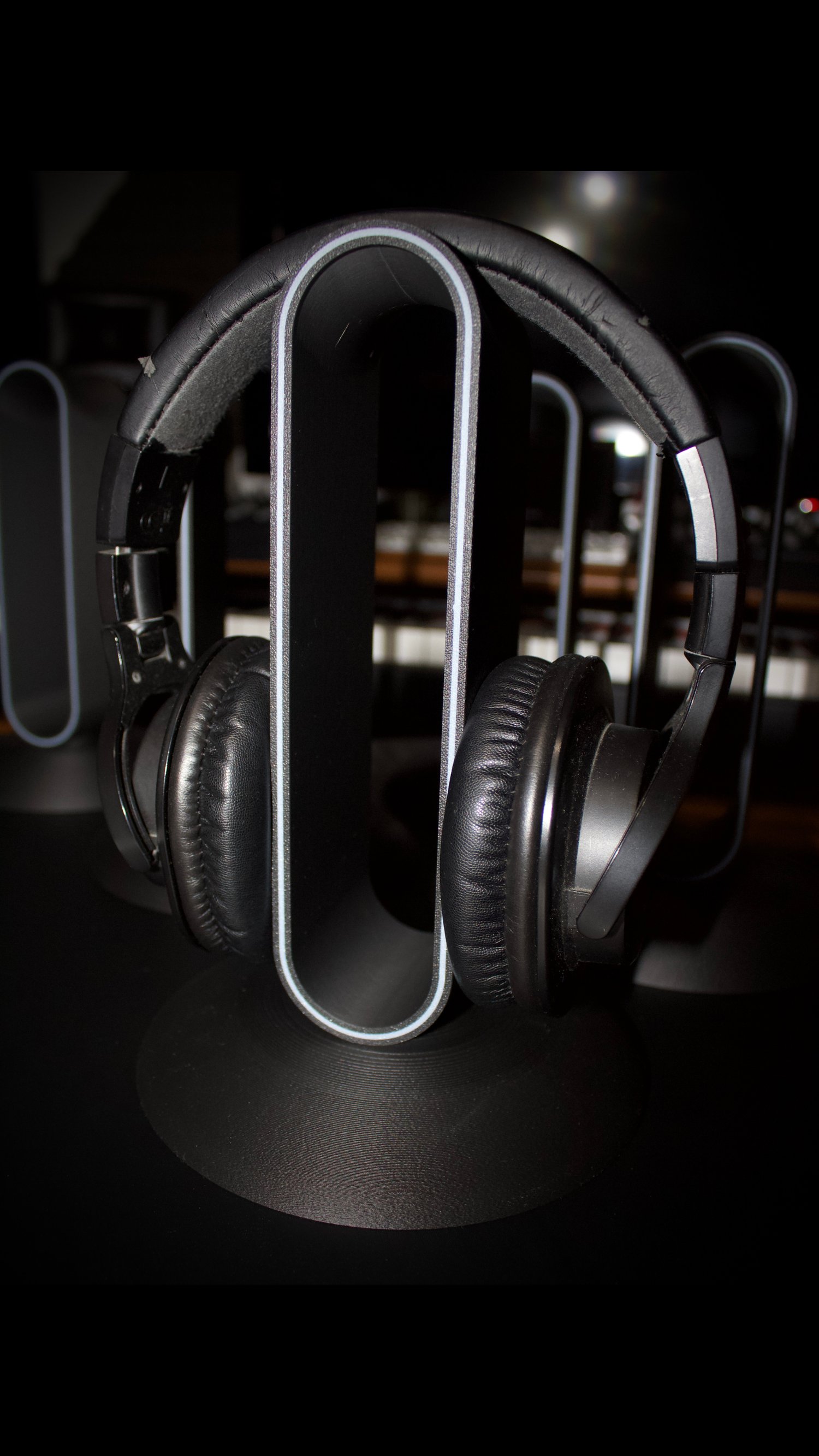 A sculptural 3D-printed stand designed with strength and balance in mind. The weighted base ensures exceptional stability, keeping your headphones secure and upright even in busy studio spaces. Crafted from high-quality materials with a smooth black matte finish, it combines durability with refined minimalism — a functional statement piece for those who value thoughtful design in their creative workspace.