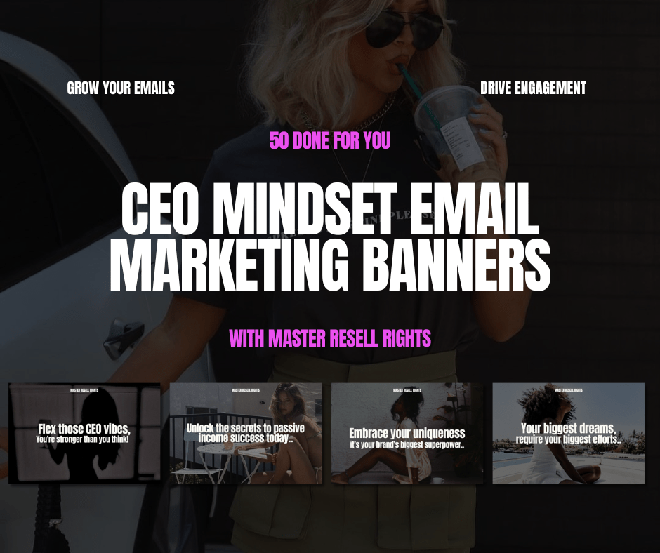 Empower your email campaigns with the CEO Mindset Email Marketing Newsletter Banners—a collection of beautifully designed, motivational banners that inspire action and leave a lasting impression. Delivered as a PDF with Master Resell Rights (MRR), you can use these banners to elevate your own marketing or sell them as part of your digital product offerings.