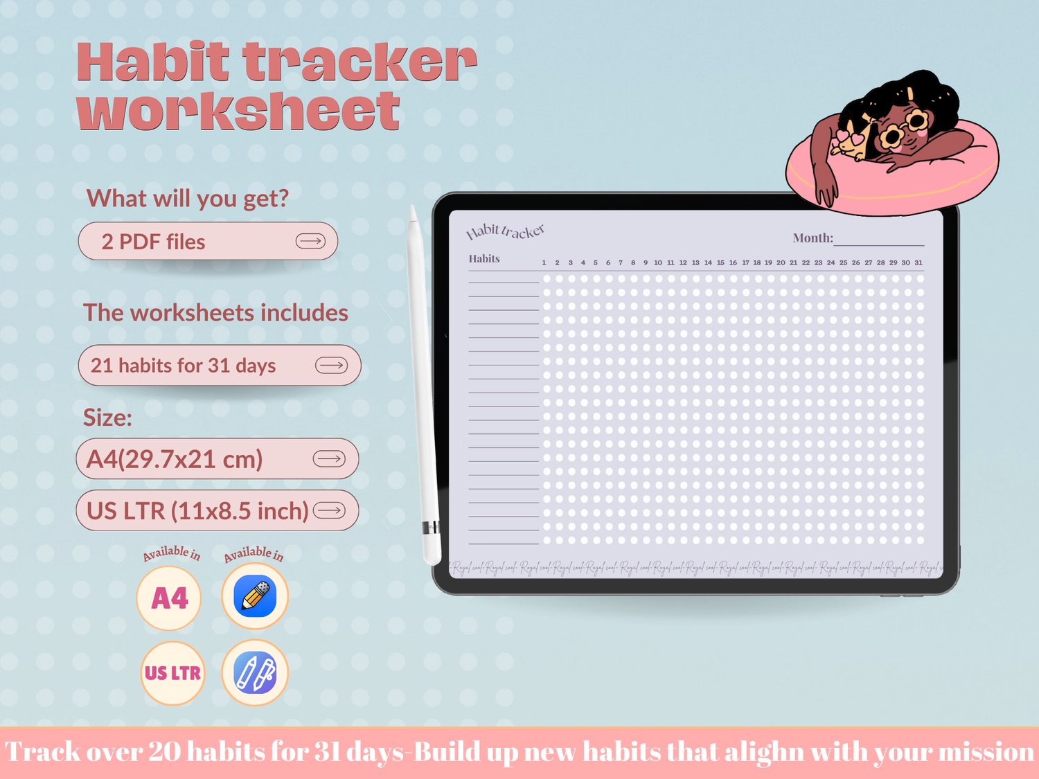 Habit Tracker Worksheet A4- US LTR