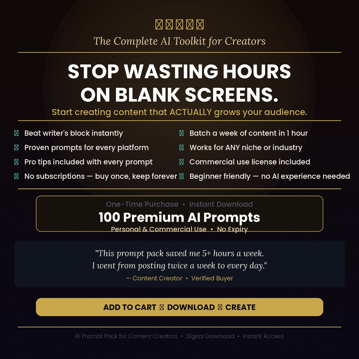 100 AI Prompts for Content Creators | ChatGPT Prompts for Social Media | Instagram YouTube TikTok Blog Email Templates | Digital Download
