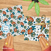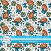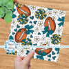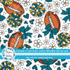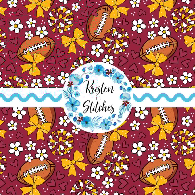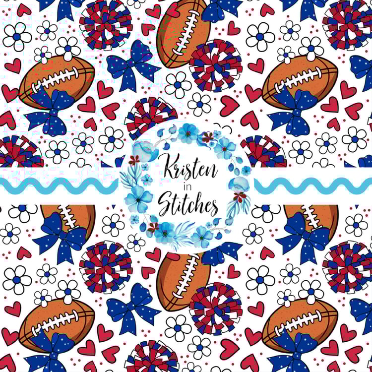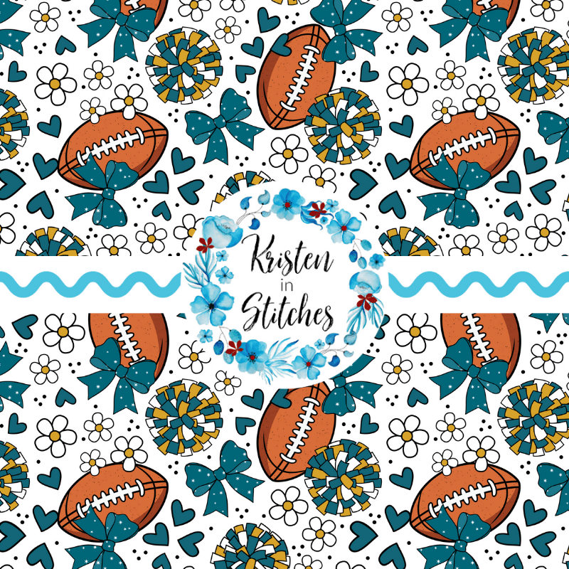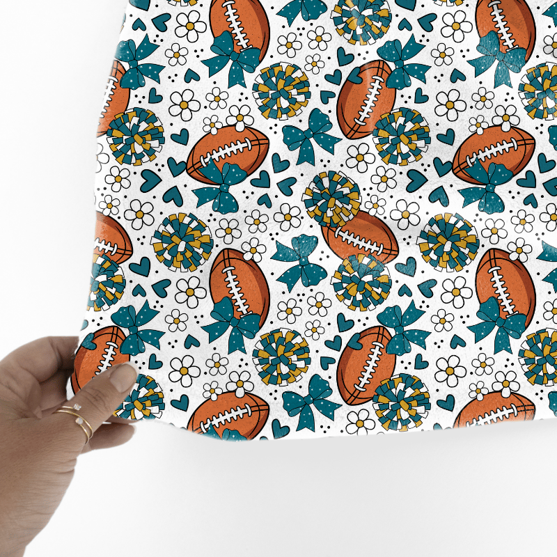 Floral pattern with daisy flowers, cheerleader bows, pompoms, footballs and hearts.