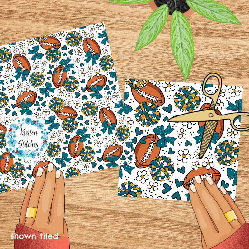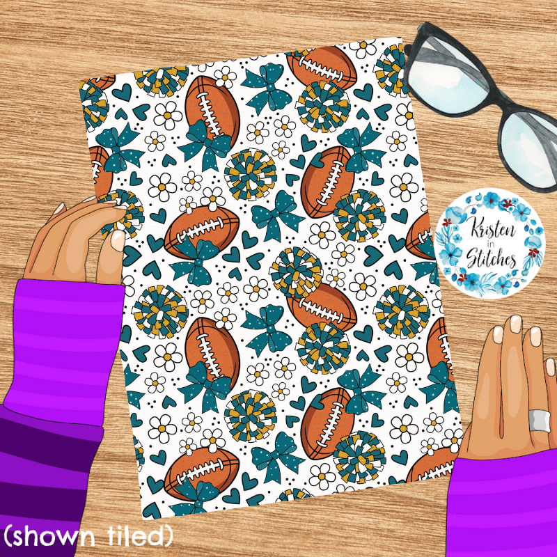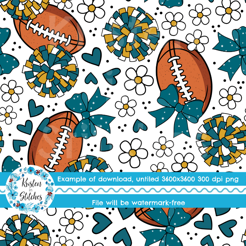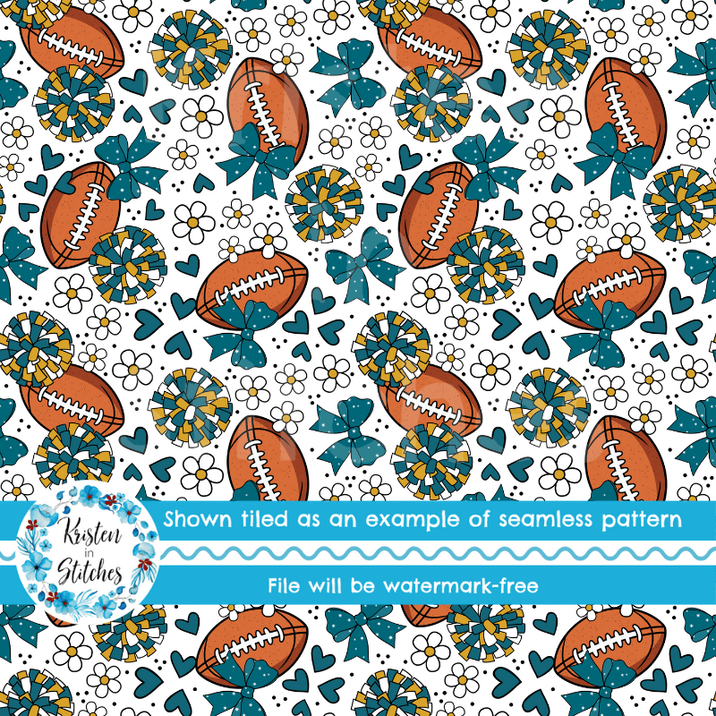 Football Cheer Bows and Pom Poms Seamless Pattern, Jacksonville Jaguars Teal and Gold