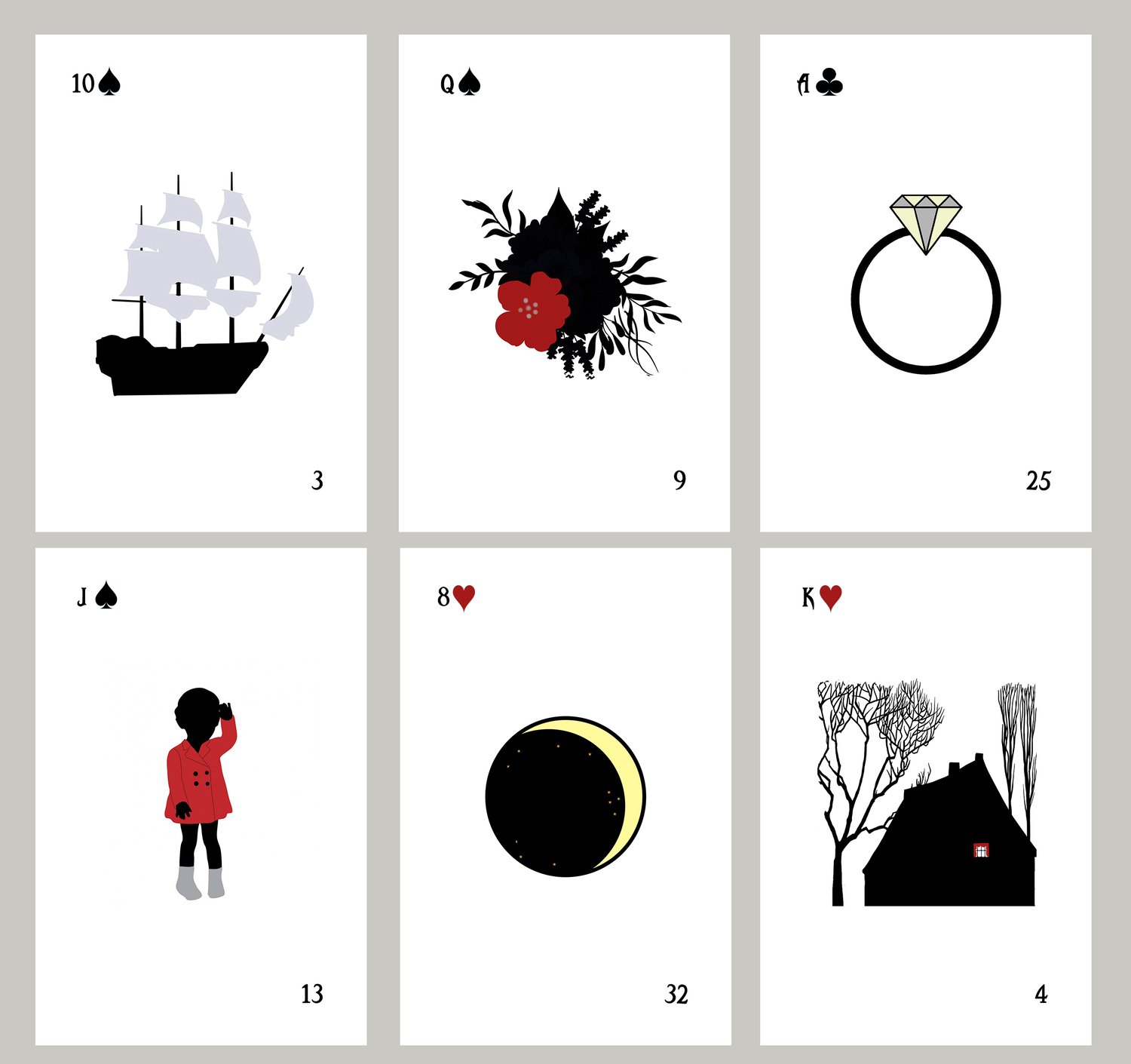 This is my original Silhouette Lenormand deck, available in two sizes: Standard and Mini (Square).