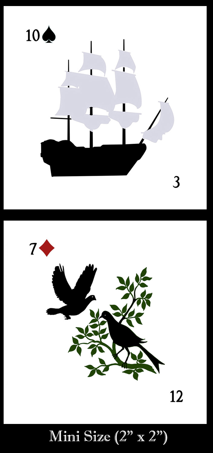 • Lenormand size: 2.25" x 3.5" or Mini 2" x 2"