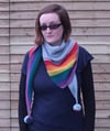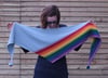 Cuar (Irish for ‘curve) is a biased garter stitch triangular shawl. The shawl begins at a point, and is increased as you work. Cuar features rainbow stripes, worked in a combination of garter stitch and slipped stitch rows, for a gradual transition between colours. Cuar features pom pom rainbows for an extra little hint of fun!