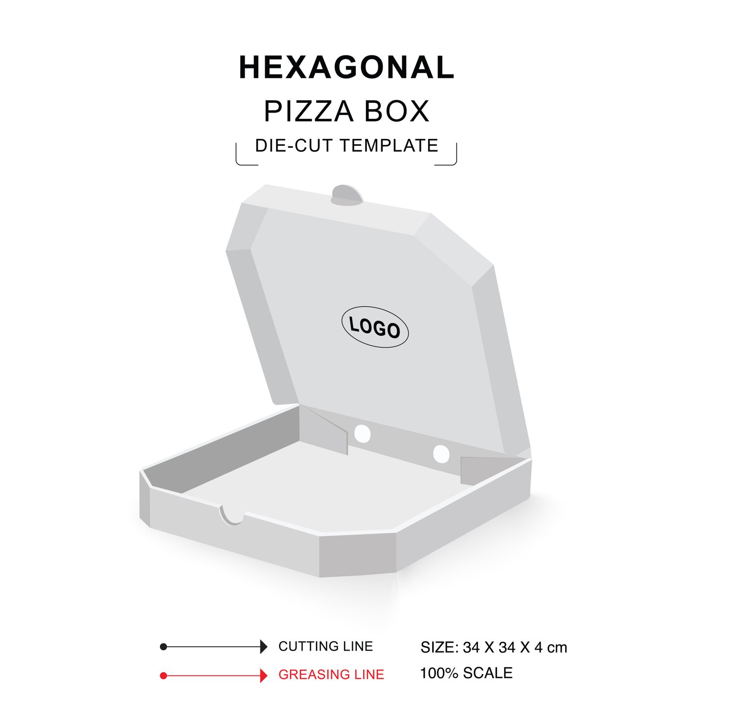 Hexagonal & Industrial Level Pizza Box Dieline (Pack of 8) Sizes