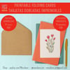 Red flowers as stickers folding cards (PDF downloadable files)