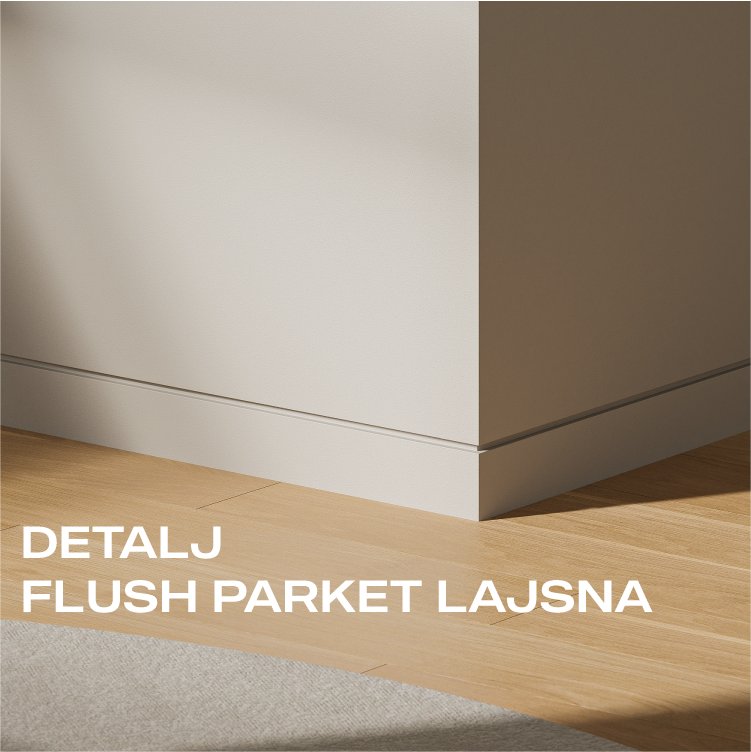 Nadgradne parket lajsne, osim što ružno izgledaju, prave problem pri montaži pločastog namještaja. Sa ovim detaljem, rješavate ih i dobijate moderan izgled zida, pogotovo kada se u projektu rade flush vrata u ravni sa zidom.