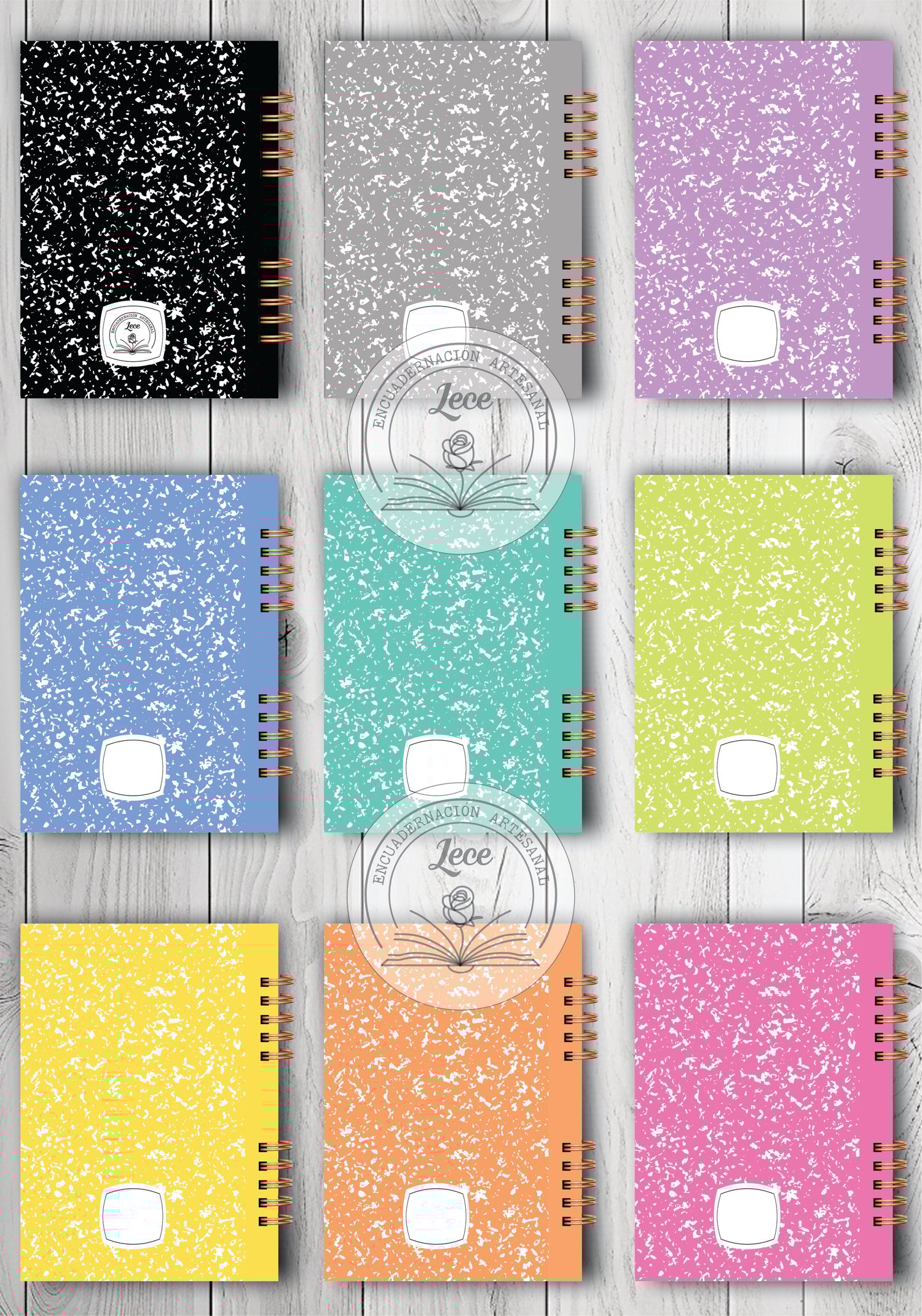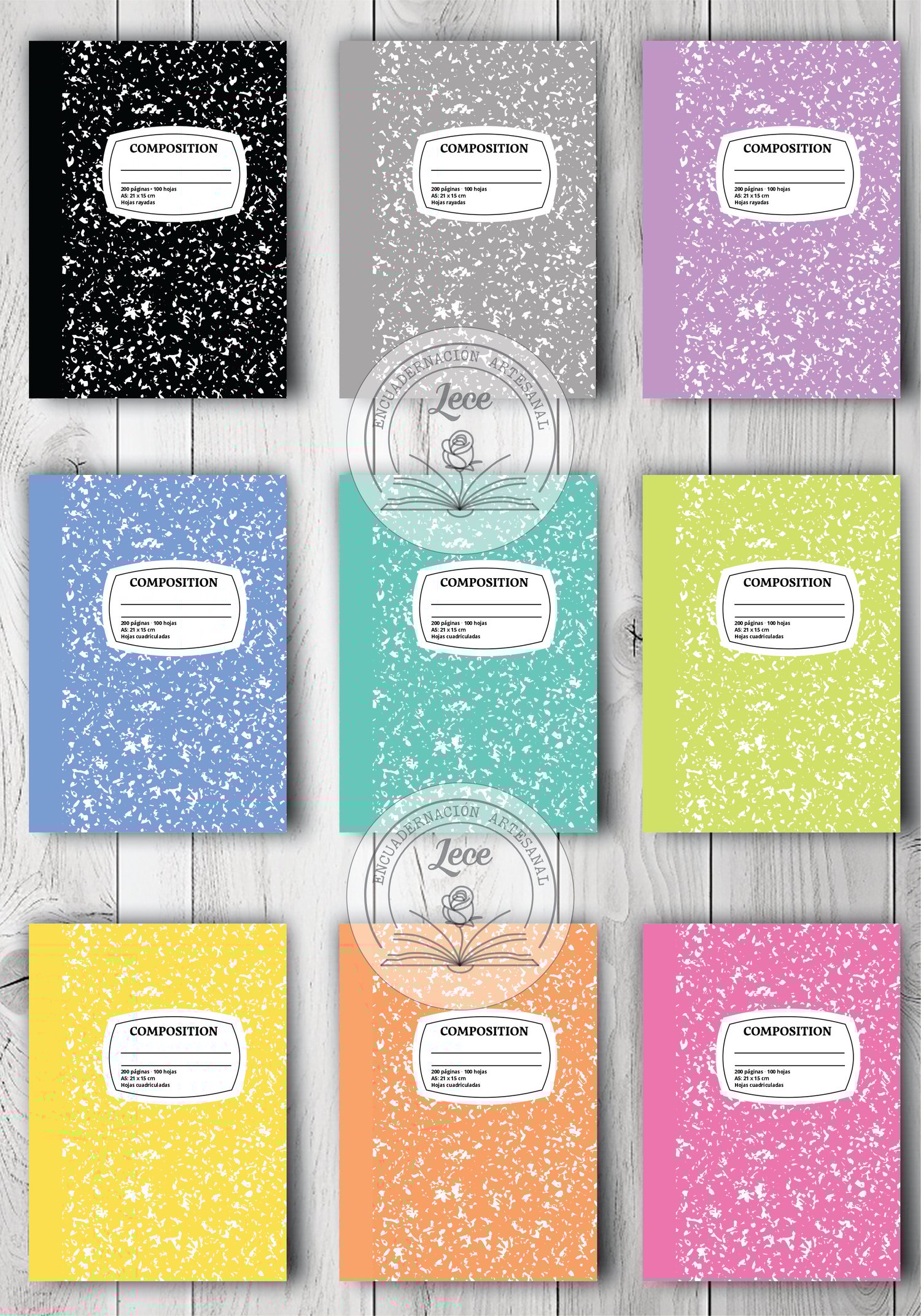 Combo imprimibles cuadernos "Composition" (9 colores - portadas texto y logo editables!!! - también podés dejarlos en blanco)