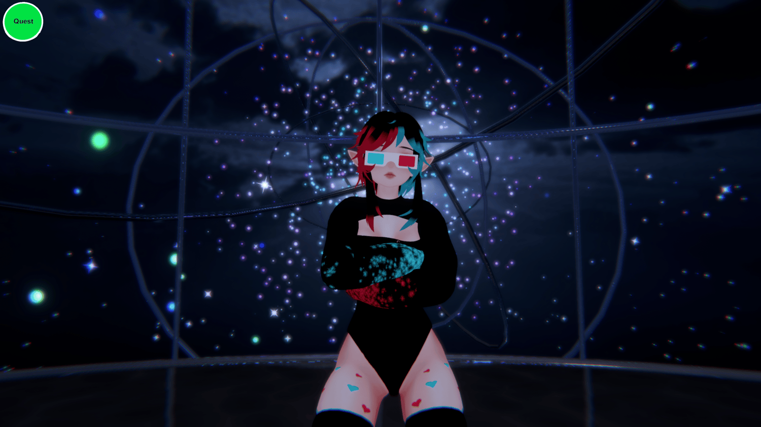 Hiya!! I made this avi for a rave on friday and decided to put it out as a freebie! She doesn't have many toggles but she has nice physbones and plenty of audiolink!