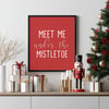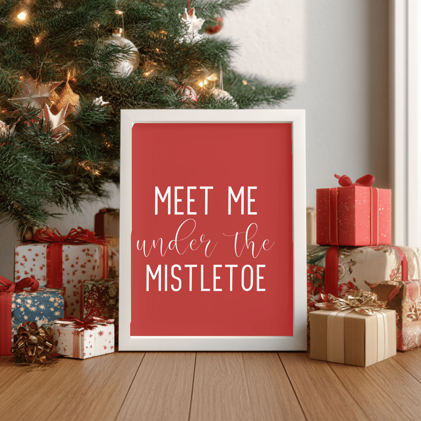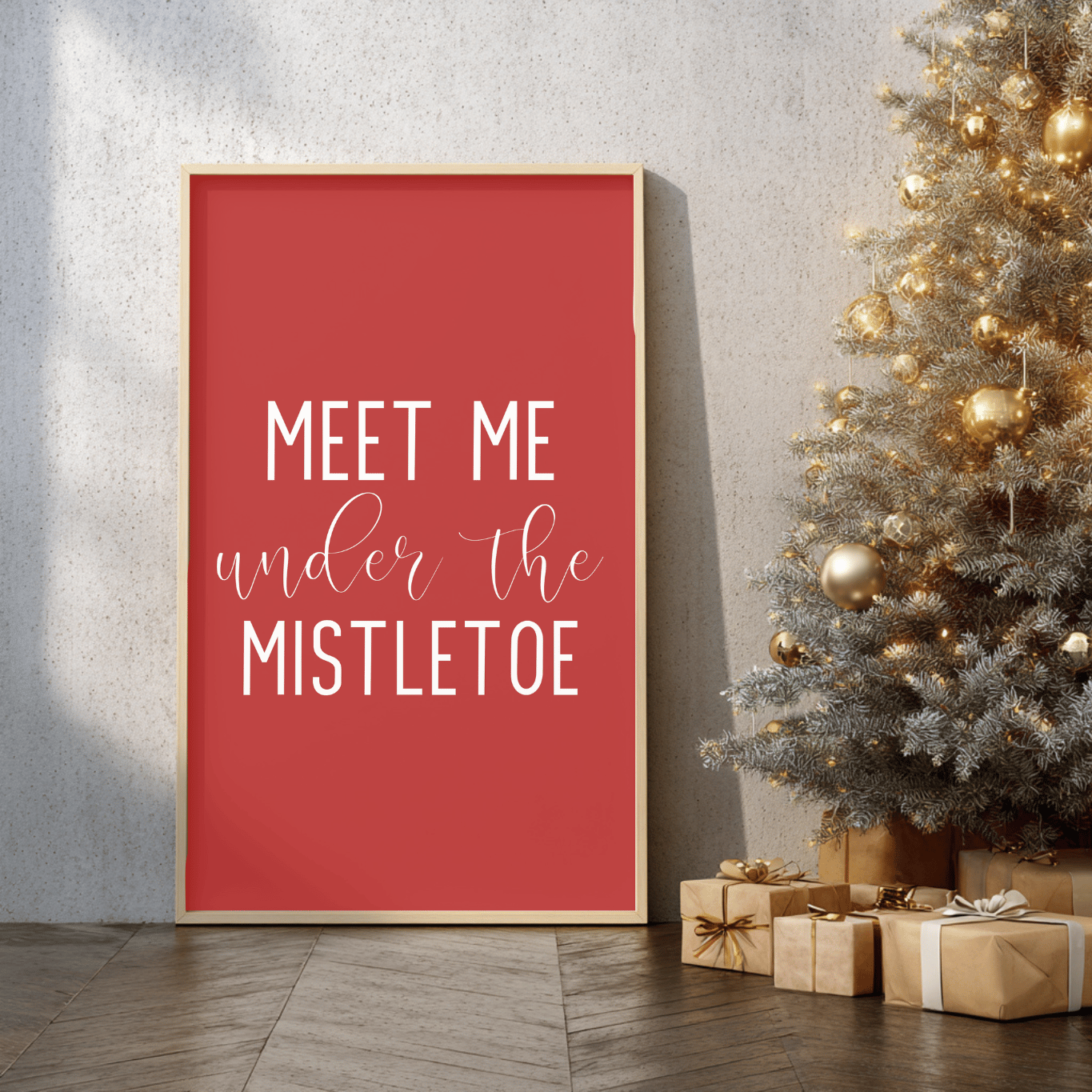 Meet Me Under the Mistletoe Christmas Wall Art | Romantic Holiday Printable Decor | Minimalist Red Christmas Print (Digital Download)