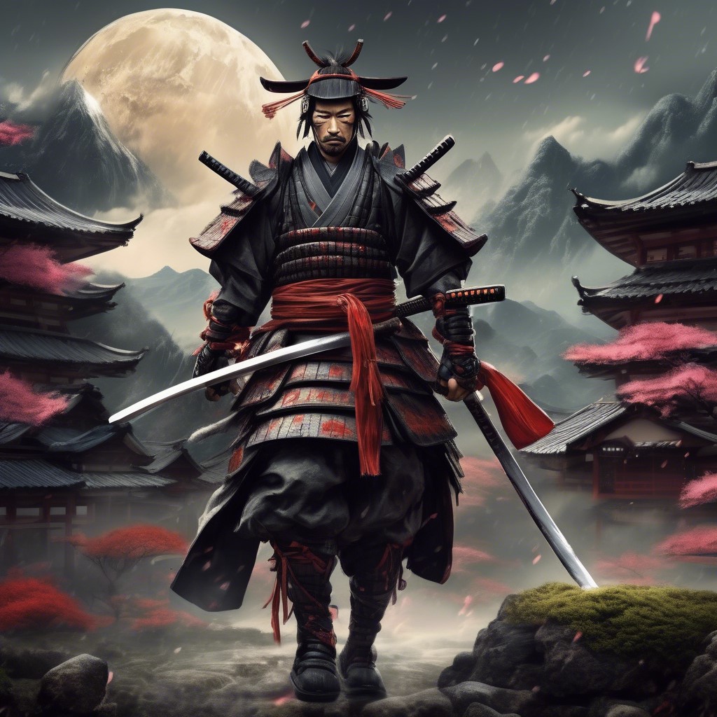 Welcome to "Way of the Warrior," your distinguished collection of samurai and Shogun-themed digital art. Our online gallery honors the noble spirit, discipline, and artistry of the samurai and the commanding presence of the Shogun, capturing the essence of their storied tradition and the timeless landscapes of feudal Japan. Each piece in our collection is a tribute to the samurai's way of life and the Shogun's authority, blending elements of historical accuracy with mythological grandeur, showcasing the elegance of the katana, the quiet strength of the dojo, the serene beauty of Japanese gardens, and the majestic power of the Shogun's court.