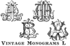 Ready to use font with dozens of monograms combining letter L with other letters... victorian vintage style