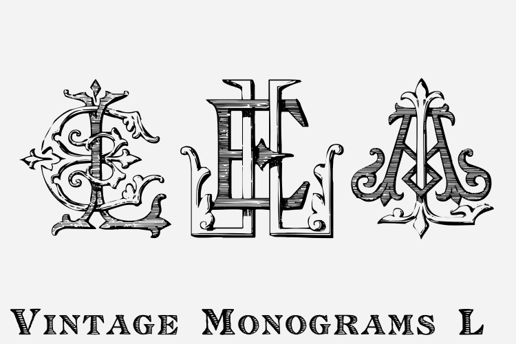 Vintage Monograms L is a classic font that features elegant and intricate monograms perfect for branding and personalization. Its ornate designs evoke the timeless style of vintage logos and can be used to add a touch of sophistication to invitations, stationery, and packaging. Monogram brings an air of refinement and exclusivity to any project.