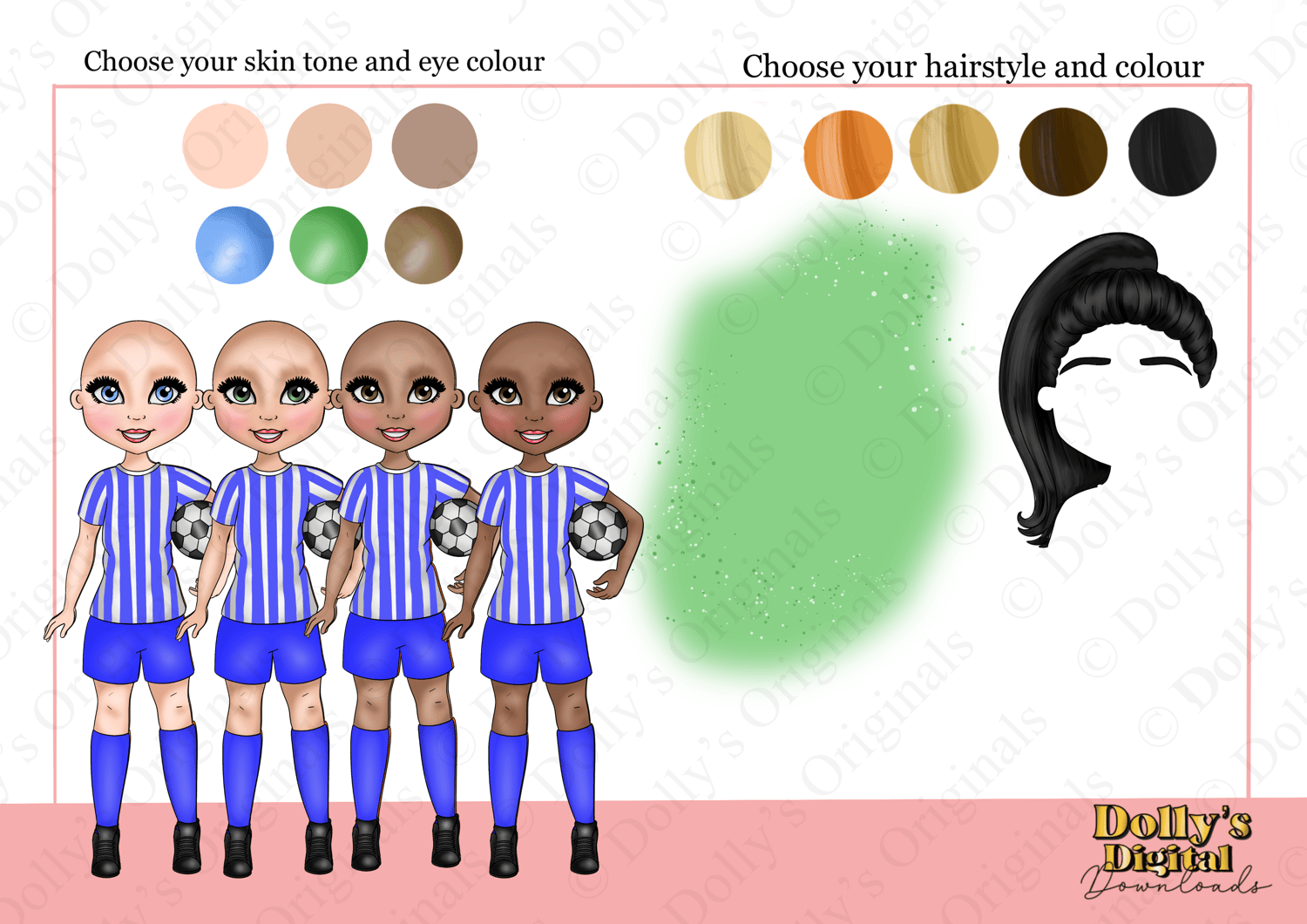 Instant digital download of our Football Girls in Blue and White Stripe PNG (47 PNG’s)