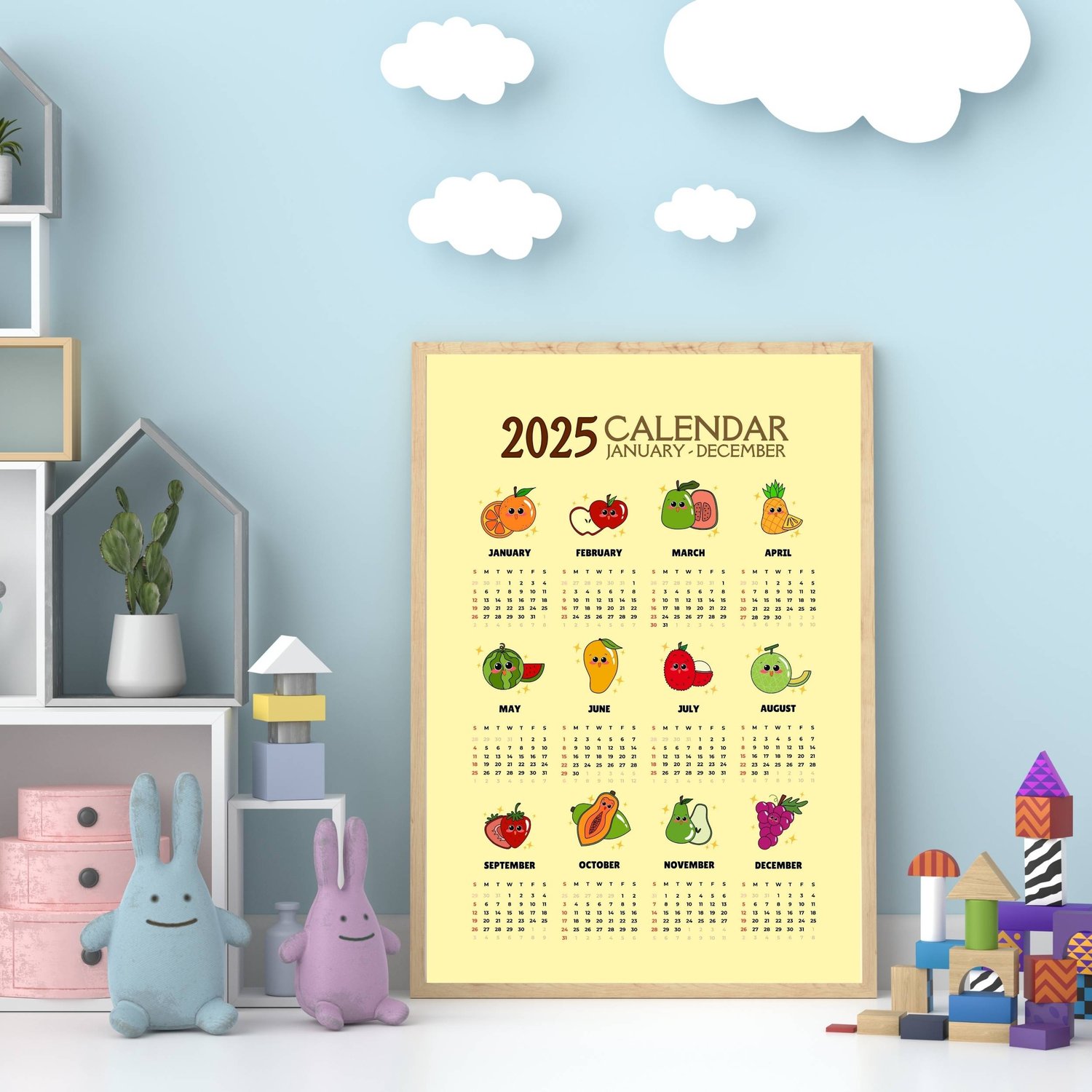 Fruits Calendar 2025, Digital Calendar, Yearly Calendar 2025, Digital download