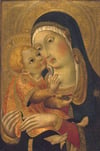 A tender and luminous image of the Virgin and Child from the workshop of the 15th-century Sienese master Sano di Pietro, whose serene Madonnas once adorned countless altars and chapels across Tuscany. The painting’s gentle golds and reds convey the warmth and intimacy of divine love, making it perfect for Christmas greetings or year-round correspondence.