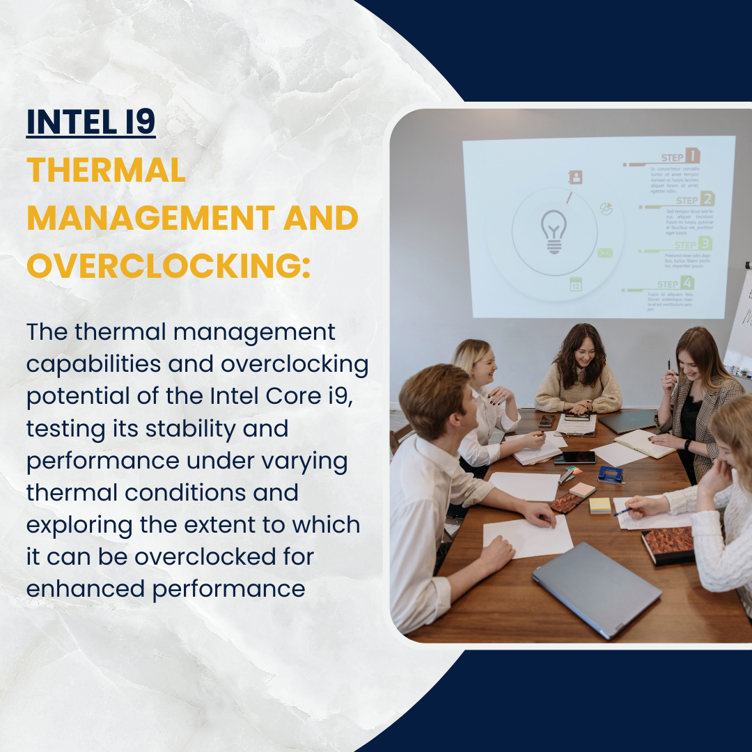 The thermal management capabilities and overclocking potential of the Intel i9, testing its stability and performance under varying thermal conditions and exploring the extent to which it can be overclocked for enhanced performance.