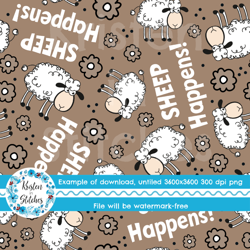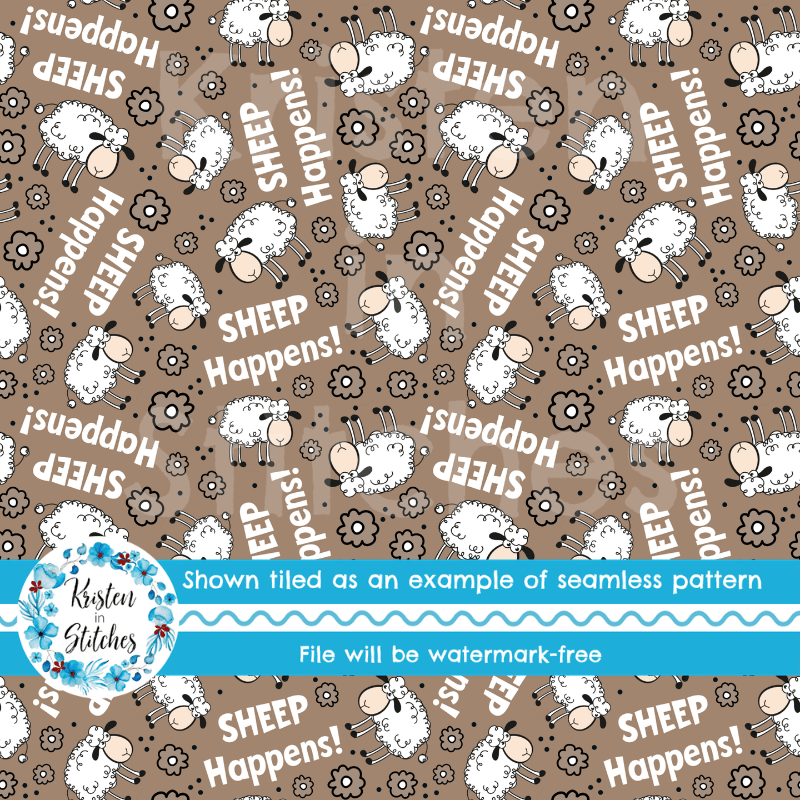 Sheep Happens Seamless Pattern, Sarcastic Animals in Tan