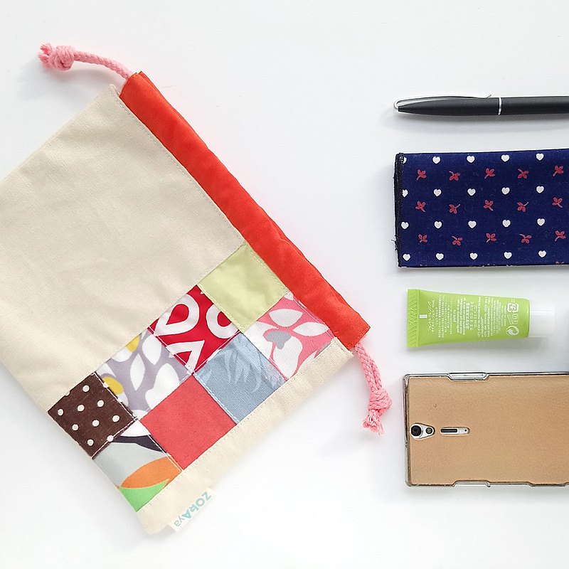 This originally designed patchwork drawstring bag is fully lined. It can hold small things in daily life such as cosmetics, power bank, earphones and chargers, and sanitary items, etc. and thus keep the tote or handbag tidy. It can also be used as a small bag when going out for a short walk.