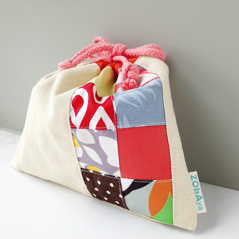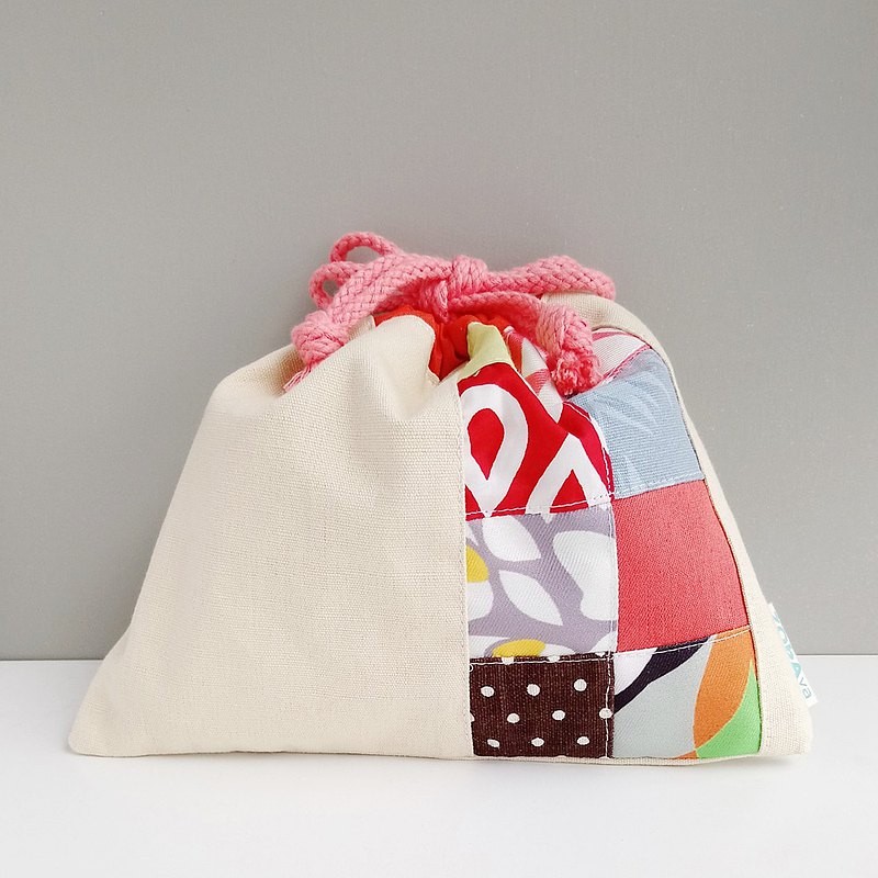 Patchwork Drawstring Bag (Lined ‧ Orange Almond)