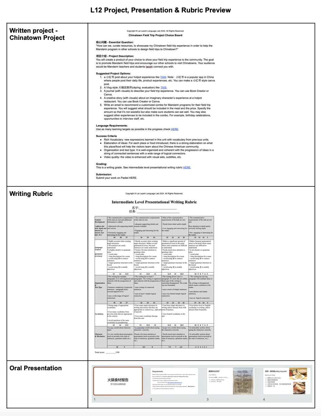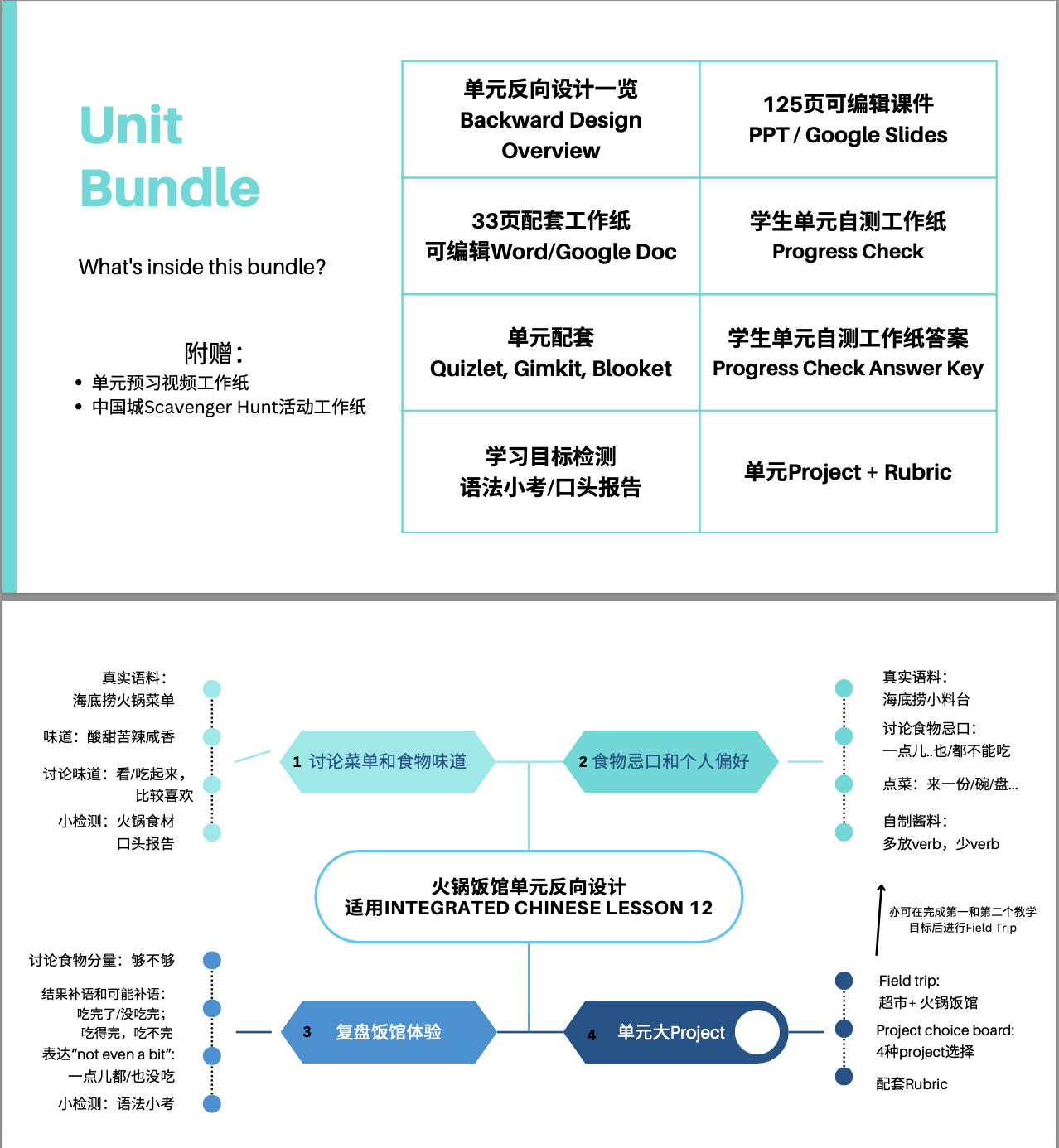 🍲 Practical Opportunities: We recommend organizing a field trip to Chinatown or a nearby Chinese restaurant/hot pot place during the unit to allow students to apply their learning in real-world settings, enhancing their language practice.