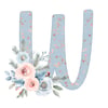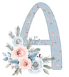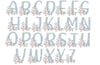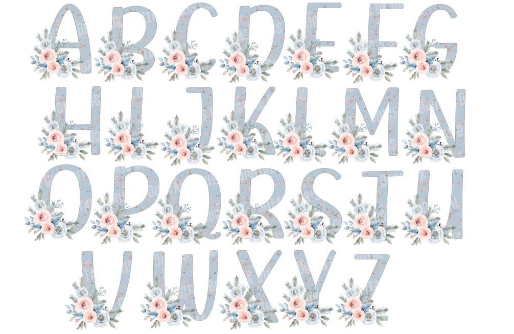 Wintery Blue and Rose Gold Stars Christmas Alphabet Set with Floral Decor Digital Download 26 PNGs