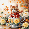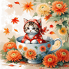 November's Flower Kitten in a Teacup - Chrysanthemum Cuddles