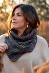 This pattern uses nearly all of the listed yardage of main color yarn. To conserve your yarn for the cowl, knit a gauge swatch without cutting the yarn and measure the swatch unblocked. When you have gauge, rip back the swatch and cast on.