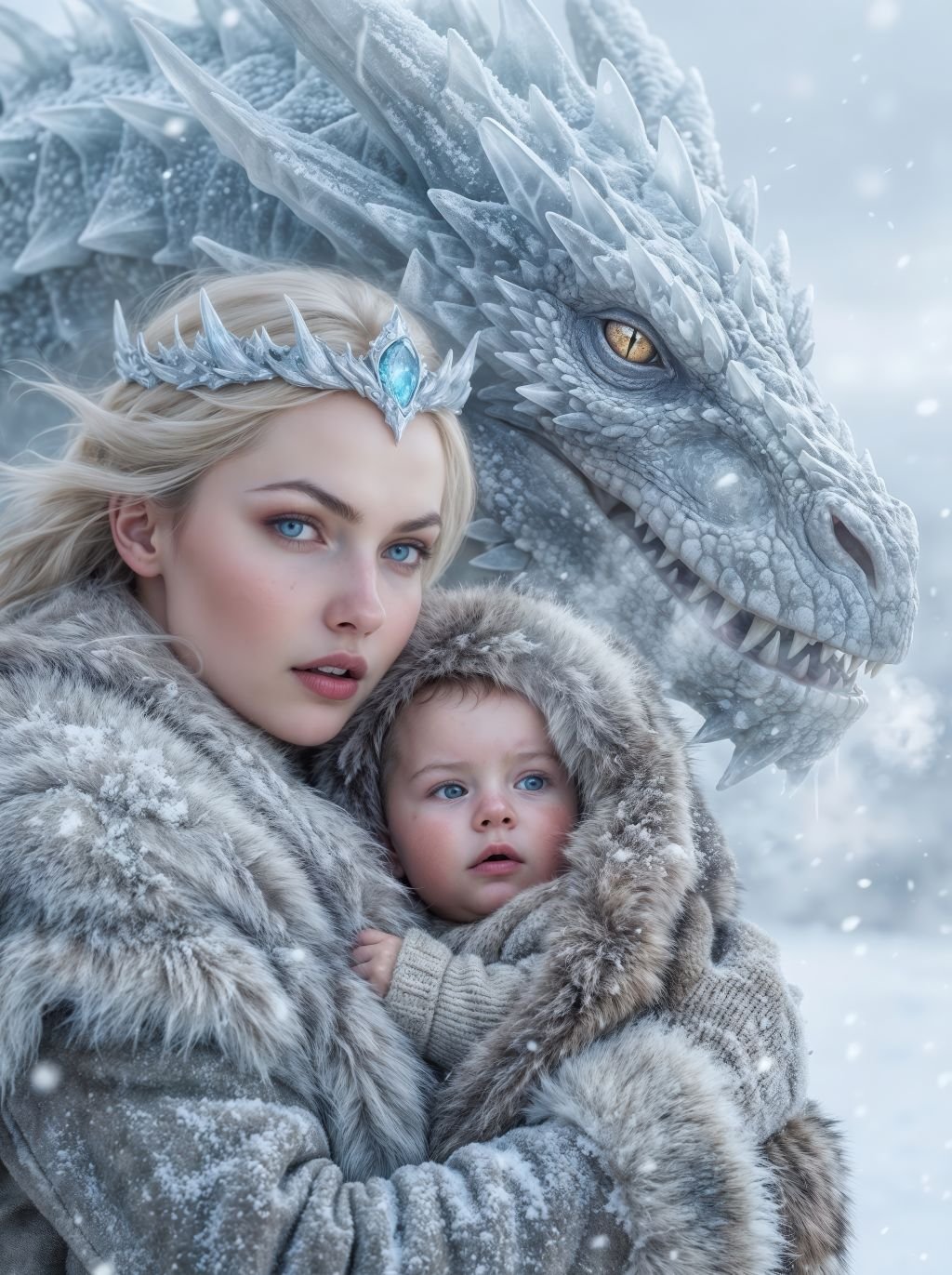 In the oldest Christmas story, a child is born into a cold world—small, fragile, and carrying a light that would change everything. This is my fantasy retelling of that miracle: not in a stable, but in a blizzard; not with shepherds and kings, but with a mother’s steady breath, a crown of ice, and a protector no one expected.