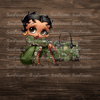 Betty Boop in Green and Brown Denim Chnl Jacket with Matching High Heels and Gold Earrings, Denim Chnl Purse, Sublimation, PNG, DTF, 300DPI, high resolution