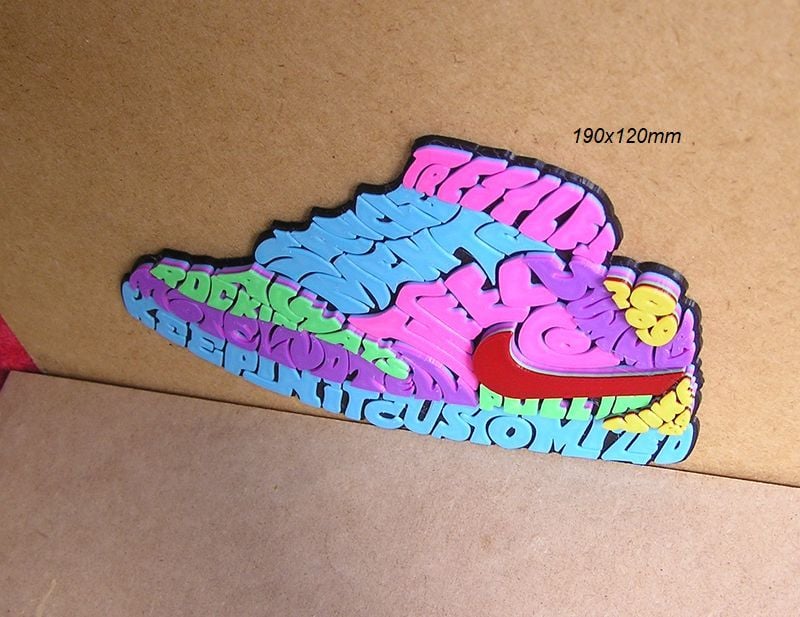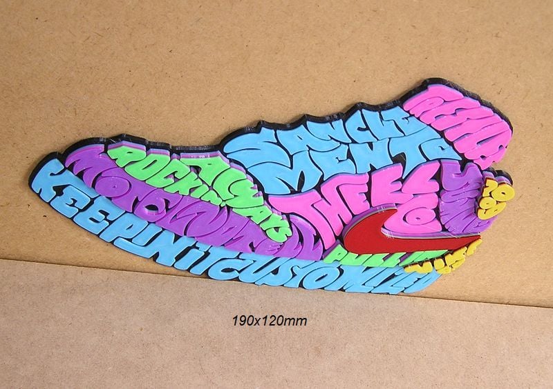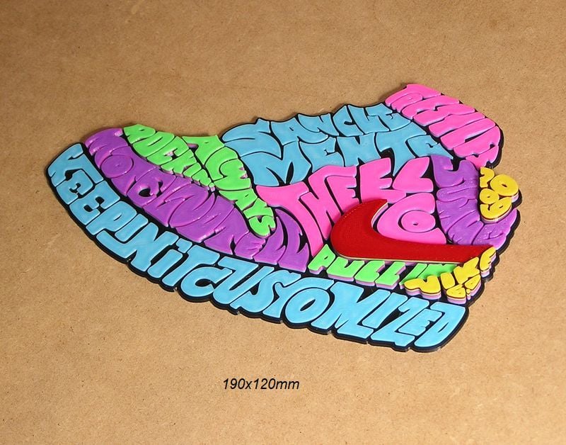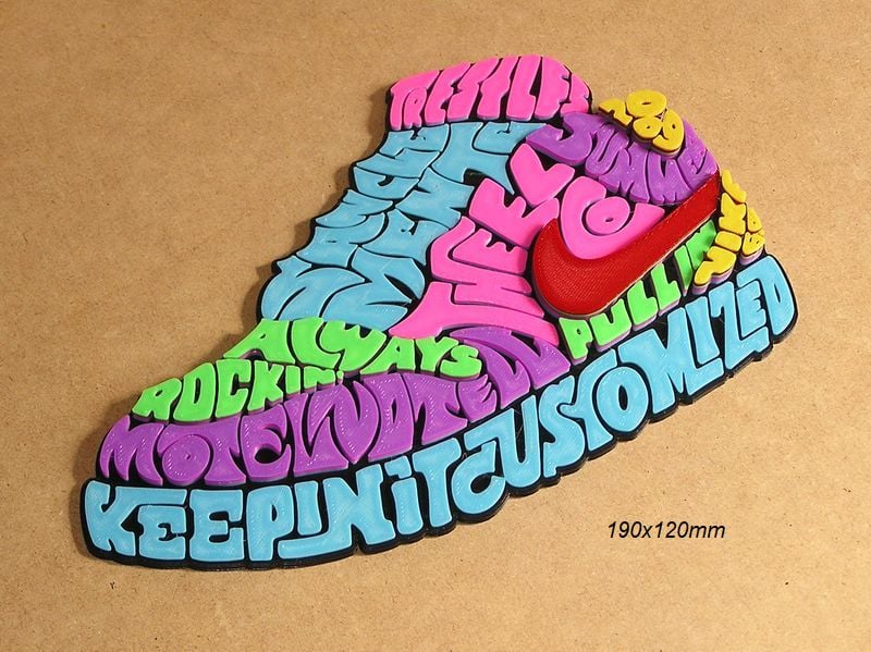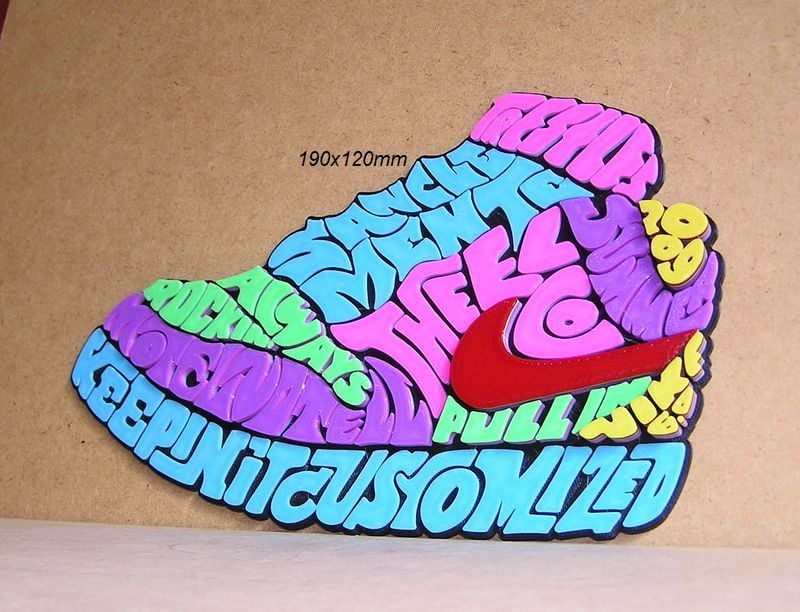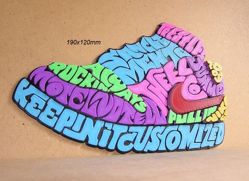 Poster logo of a sports shoe formed with texts, these STL and Gcode files have been created to be printed in various colors with any FDM type printer. The color changes have been made with the Elegoo Neptune 3 Pro printer, but they can be printed on any printer.