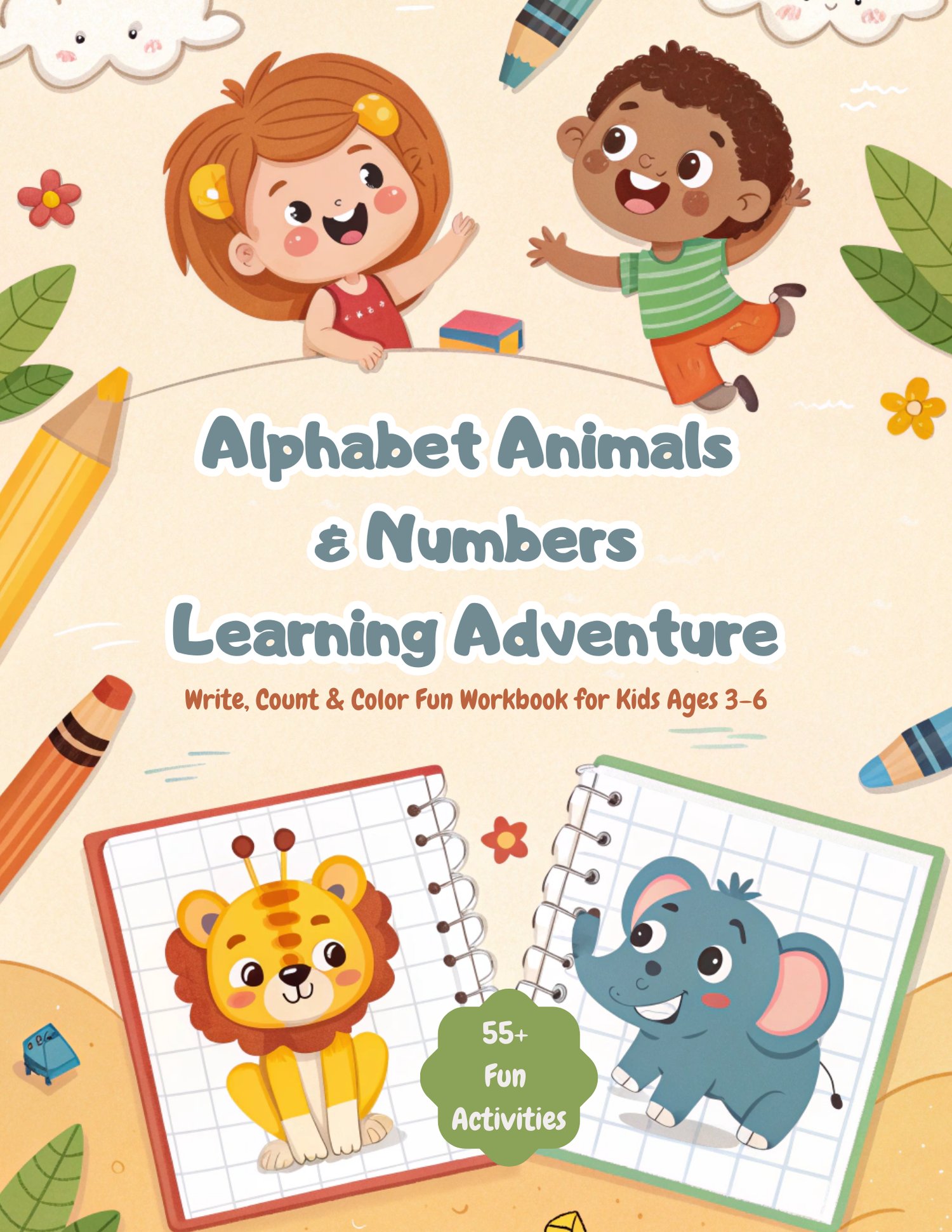 Alphabet Animals & Numbers Learning Adventure Write, Count & Color Activity Workbook for Kids Ages 3–6