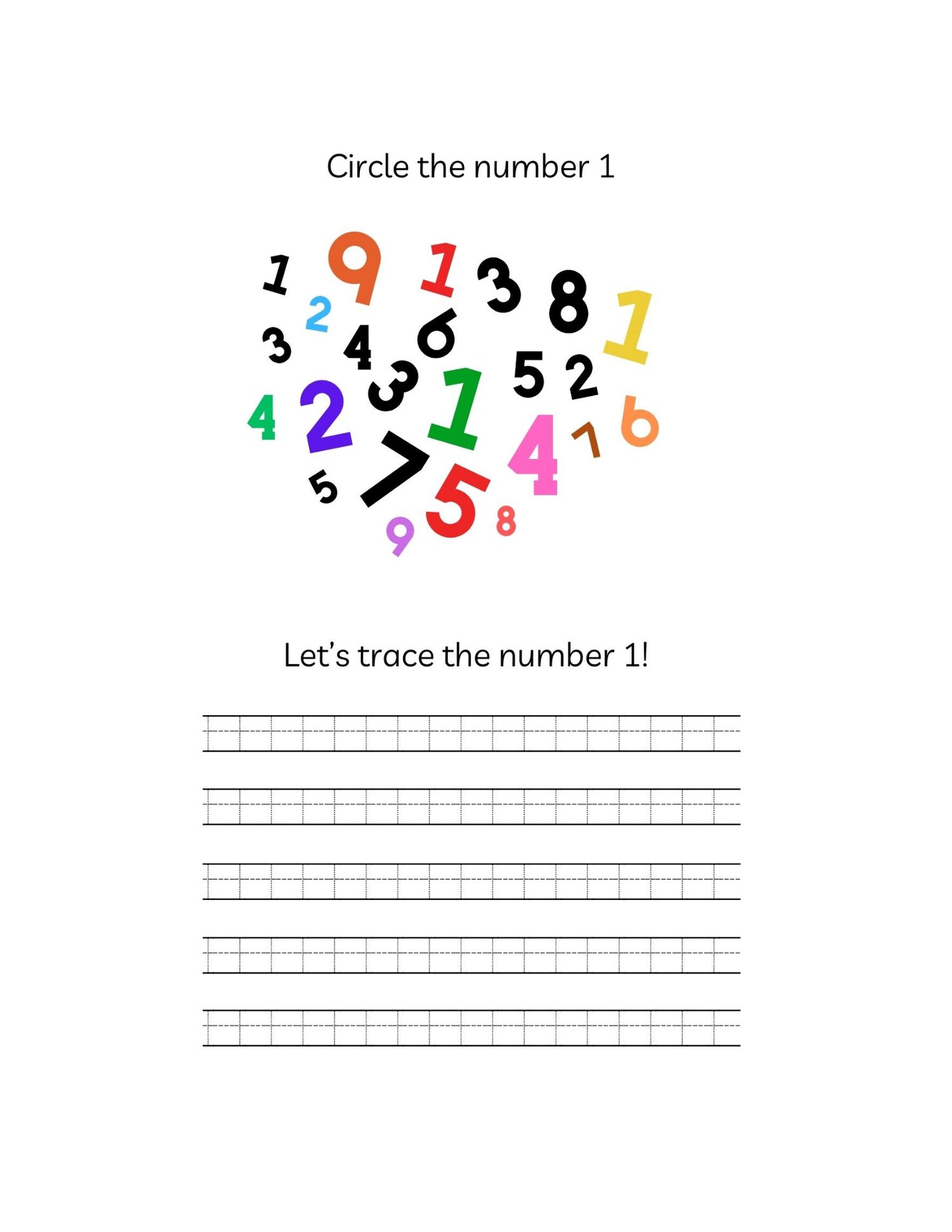 - Numbers 1–10 writing + counting practice