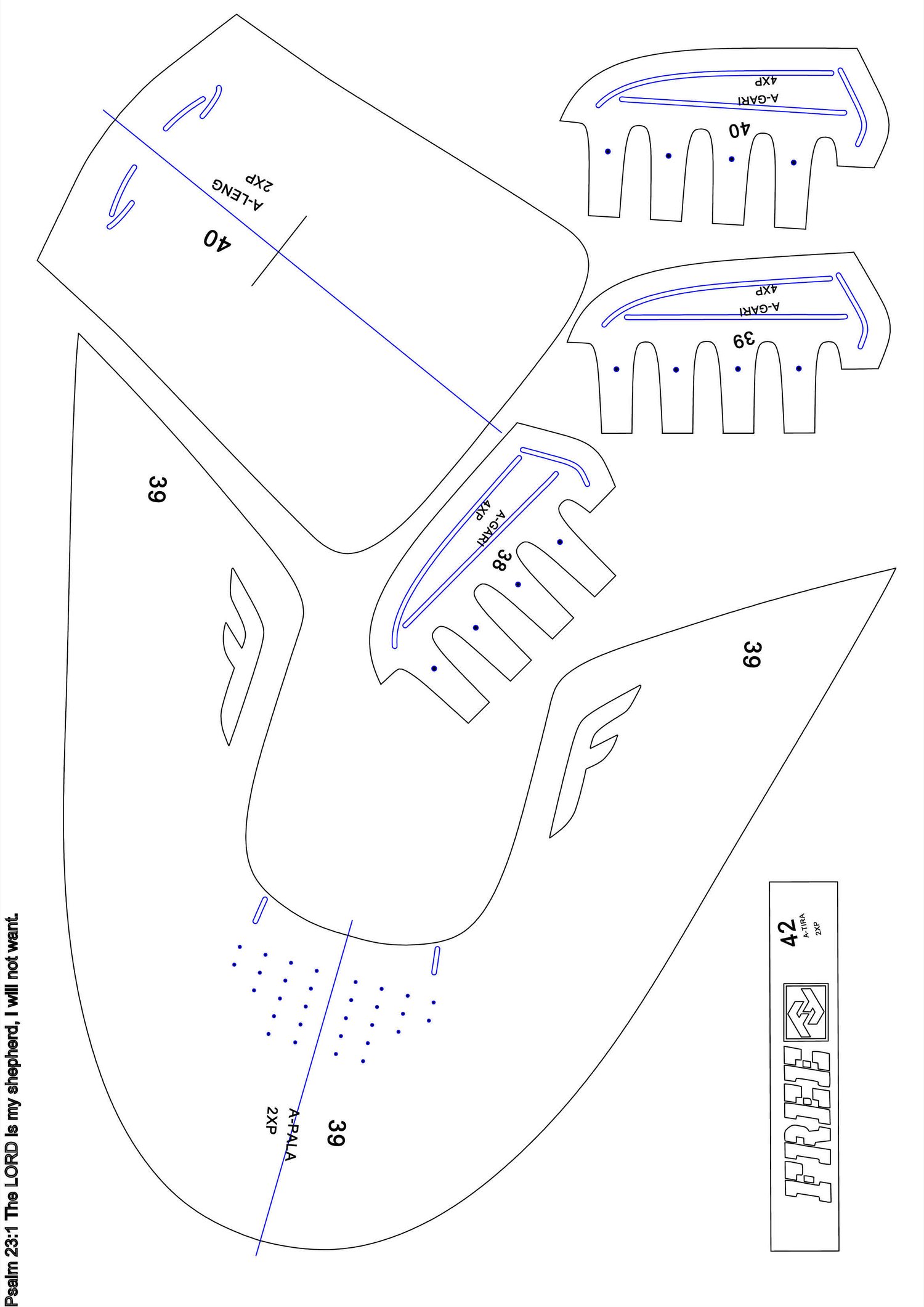 patrones en PDF hoja A3 conprimido WinRar, serie del 38 AL 43.