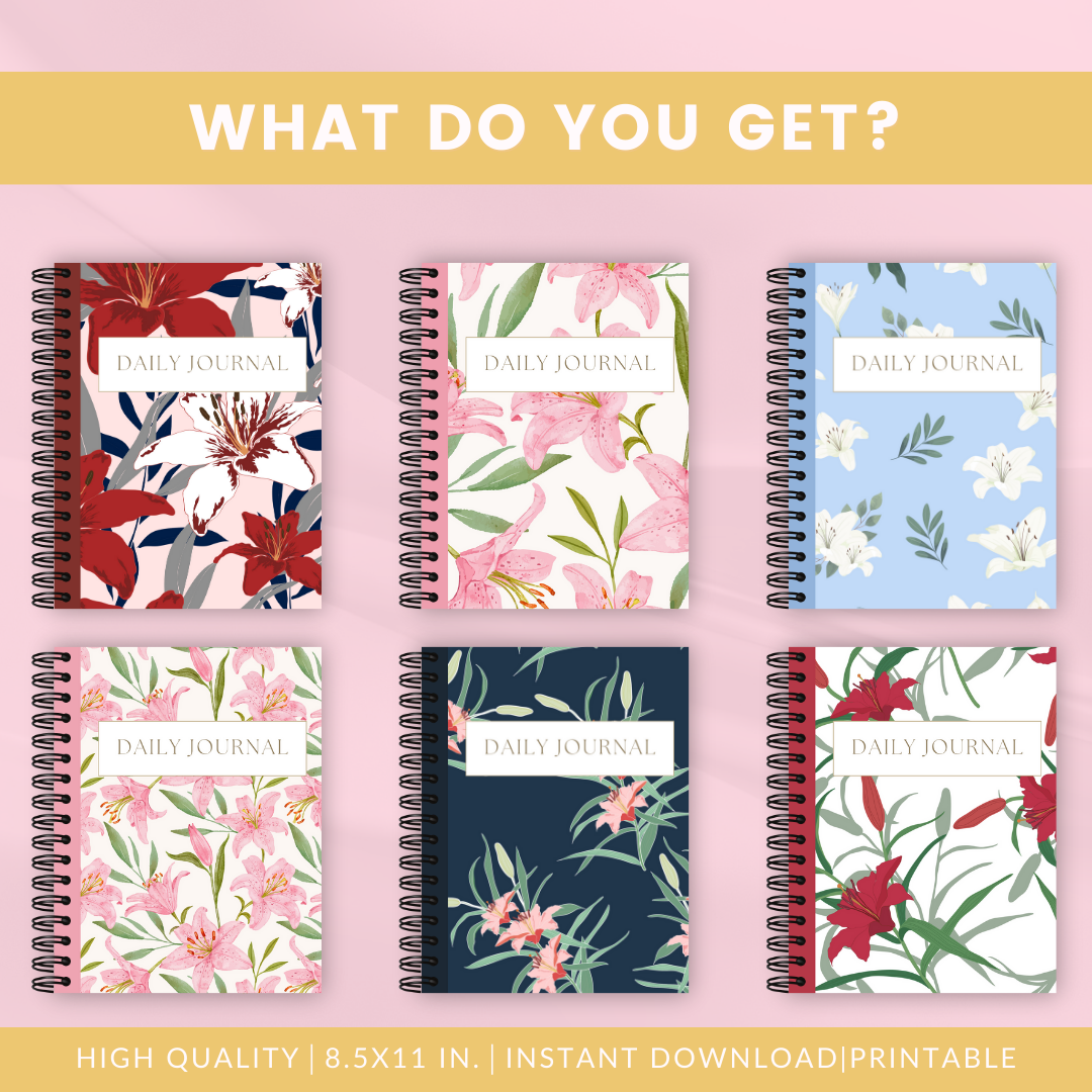 Enhance your digital journaling experience with our elegant Lily-themed journal covers, designed to elevate your creativity on the Goodnotes app. Fully editable and thoughtfully designed in an 8.5x11 in format, seamlessly merge functionality with the delicate beauty of lilies in our journal covers.