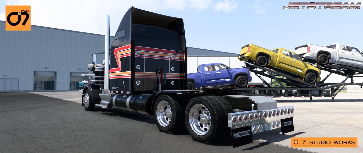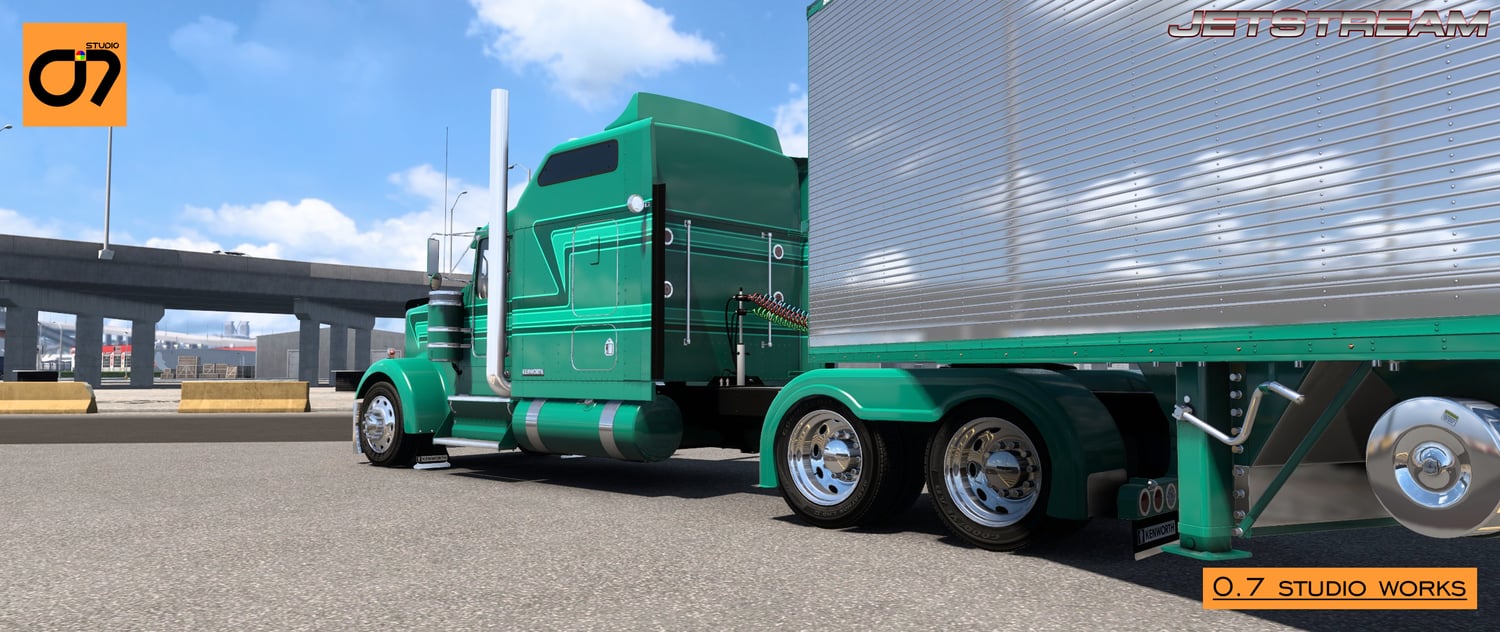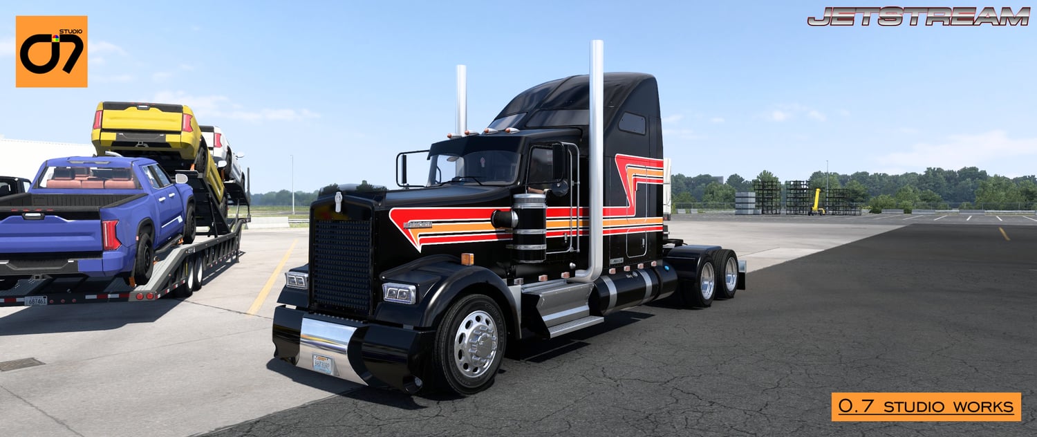 Embark on a journey through trucking history with Jetstream, an original paint scheme mod designed exclusively for American Truck Simulator. Transport yourself back to the 1980s, where the Kenworth W900B reigned supreme on the highways of America. Jetstream pays homage to this iconic era, offering a glimpse into the past with its striking design. Originally offered as a factory paint scheme option for new W900 owners, Jetstream was the epitome of style and sophistication. Now, you can bring that same level of elegance to your virtual fleet with Jetstream.