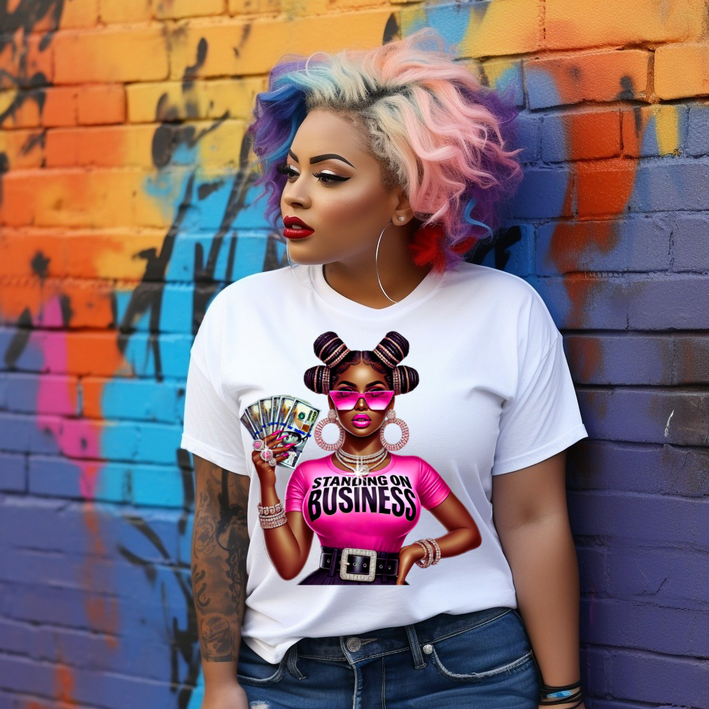 Standing on Business PNG | Boss Babe Hustle Fashion Money Graphic | Pink Glam Afrocentric Digital Download | Instant Download