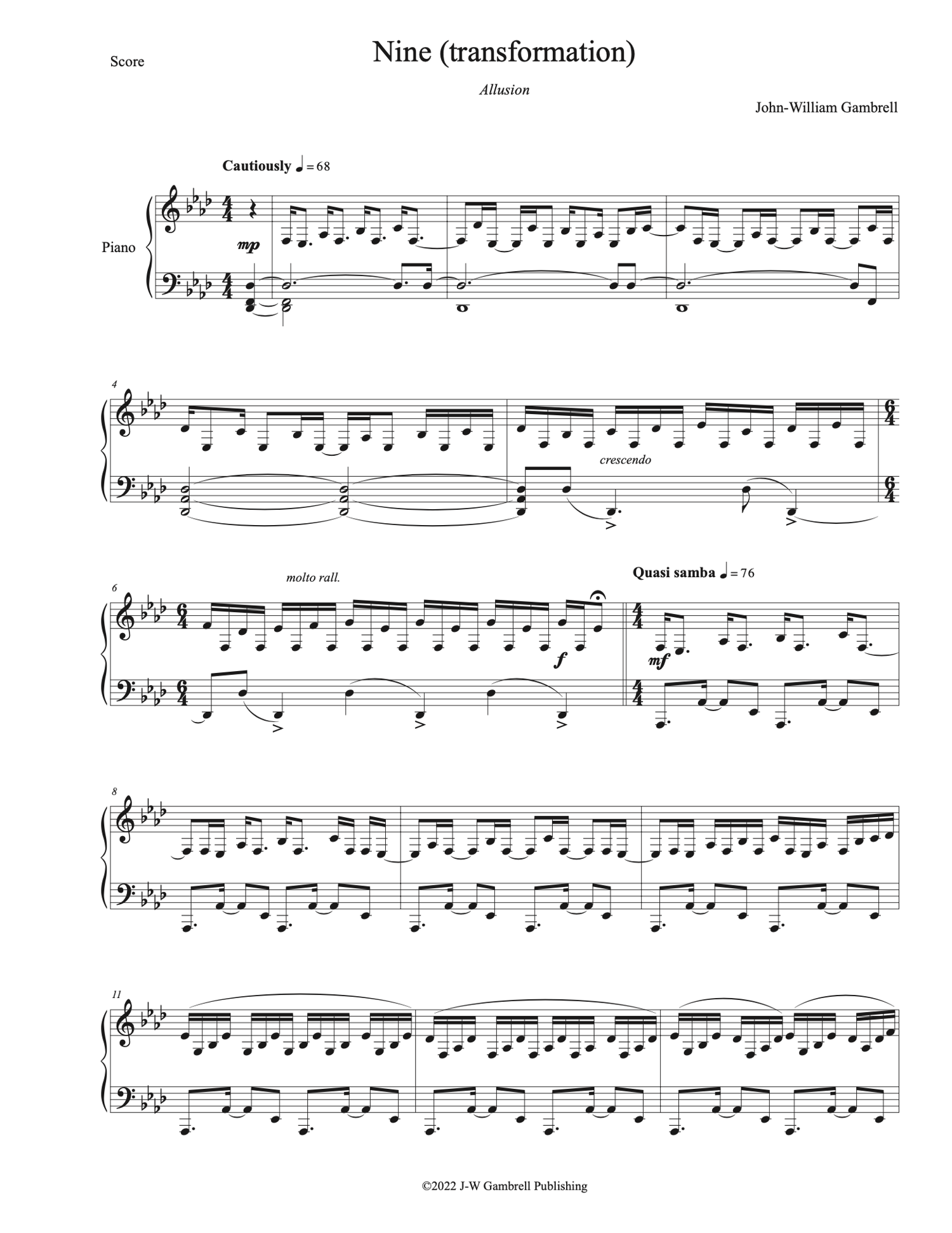 Nine (transformation) - Allusion (Piano Sheet Music)