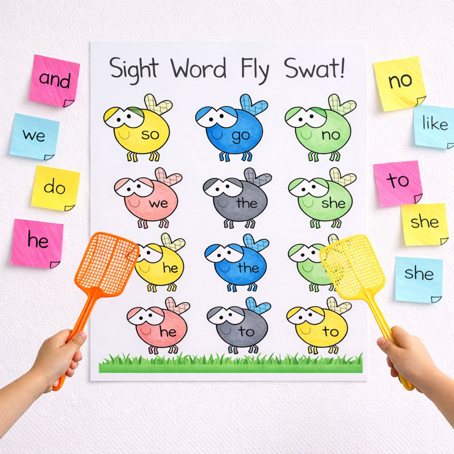 · Sight Word Fly Swat Template (includes editable title so you can do names / verbs anything else).