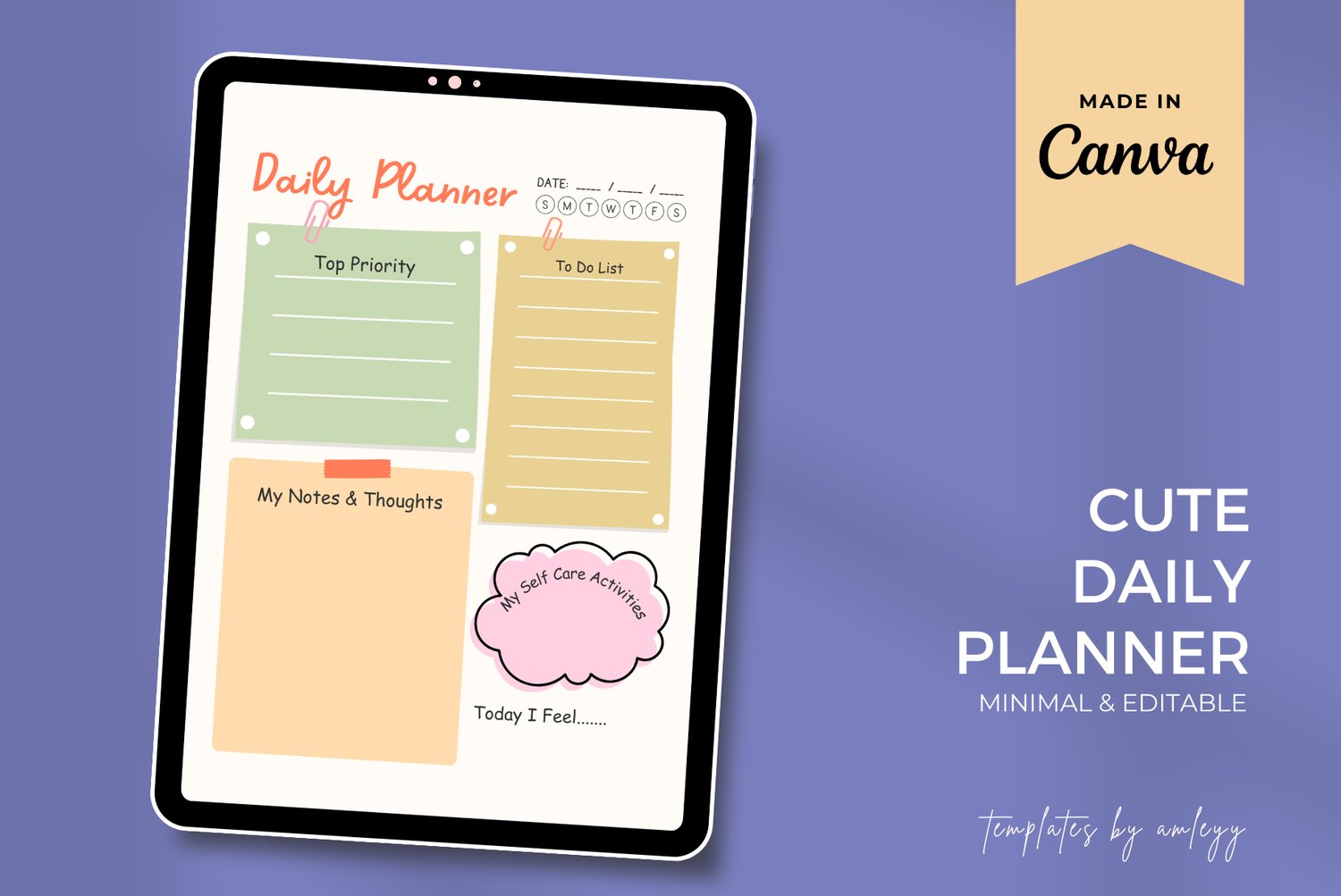 This FREE Cute Daily Planner Canva Template is designed with soft pastel colors and a clean, aesthetic layout to help you stay organized while enjoying the planning process.