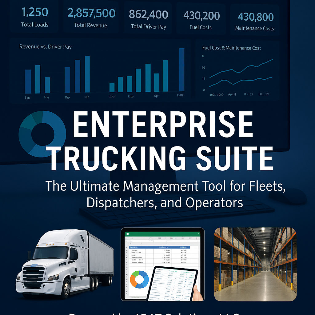 Take control of your entire trucking operation with the Enterprise Trucking Suite β a powerful, all-in-one Excel-based management system built for owner-operators, fleet managers, and logistics professionals who demand performance, precision, and profitability.