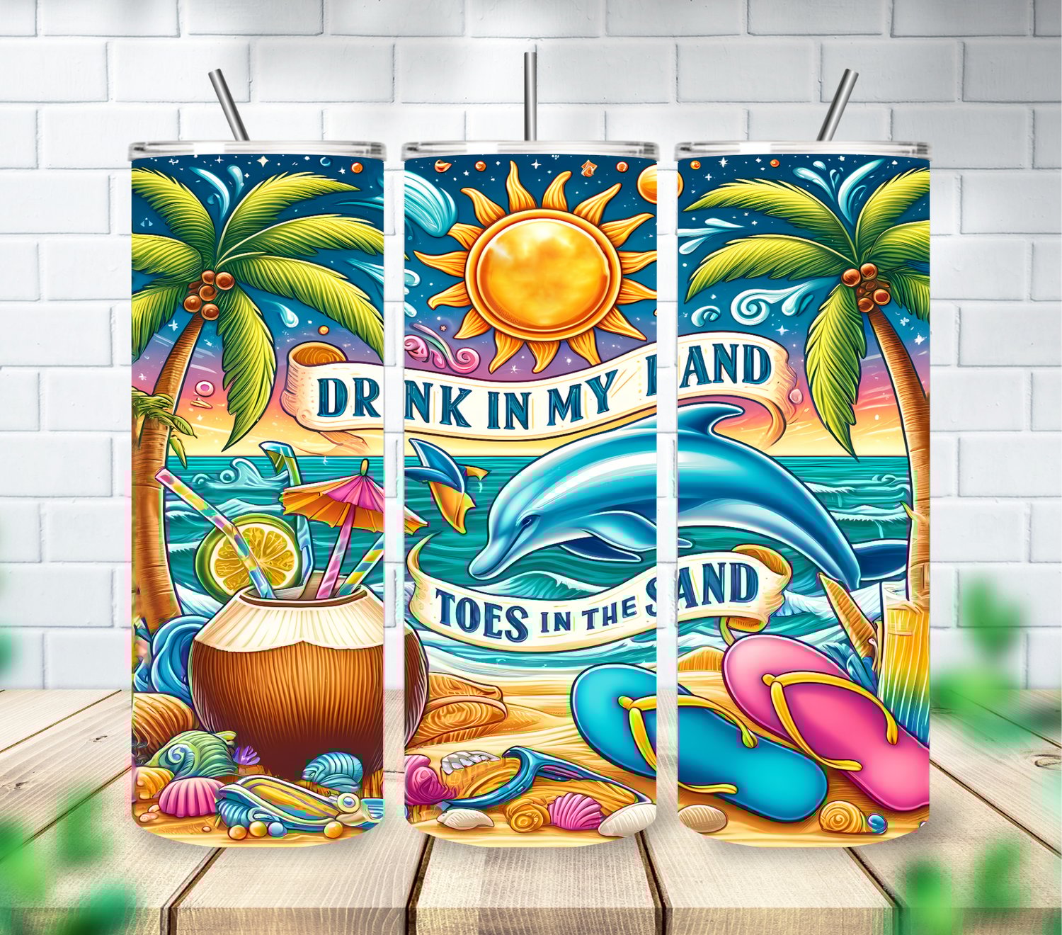 Drink In My Hand Toes In The Sand Beach Tumbler Travel Mug