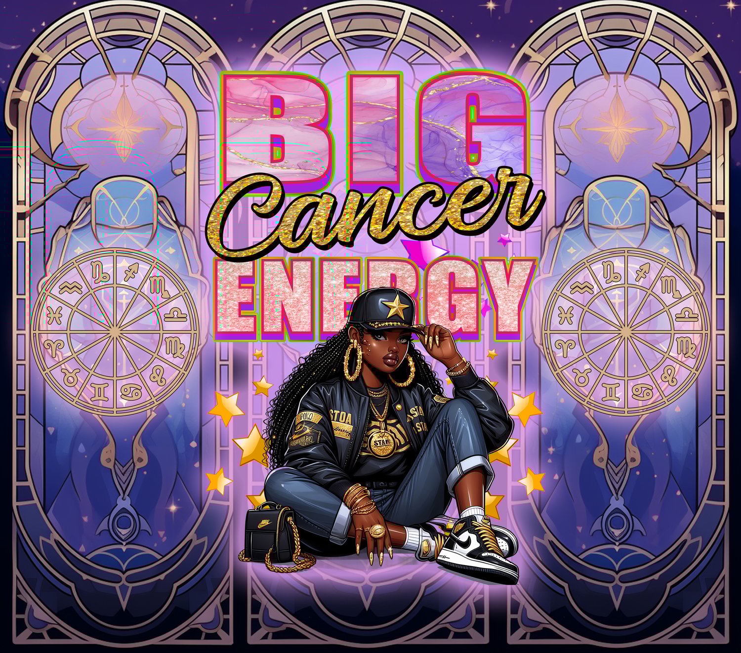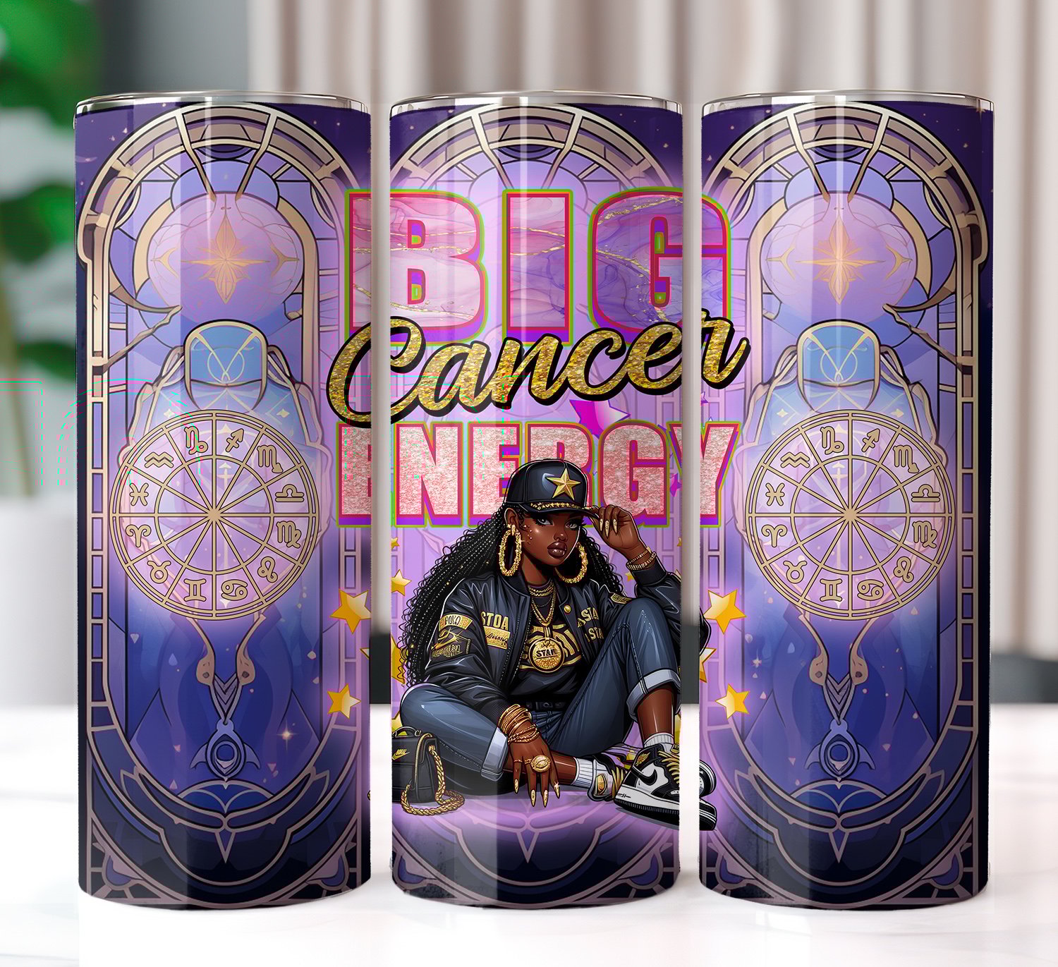 Feel the intuitive, nurturing energy of Cancer with this handmade BIG Cancer Energy 20oz tumbler! This luxury sublimated design includes cosmic tones, gold details, and a stylish illustration representing the emotional and powerful Cancer queen.
