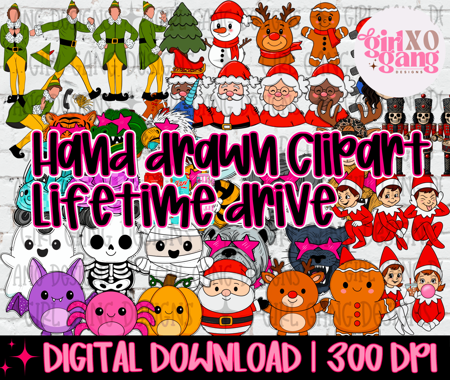 over 400 Hand drawn LIFETIME CLIPART drive access, Past, Current & Future designs included!