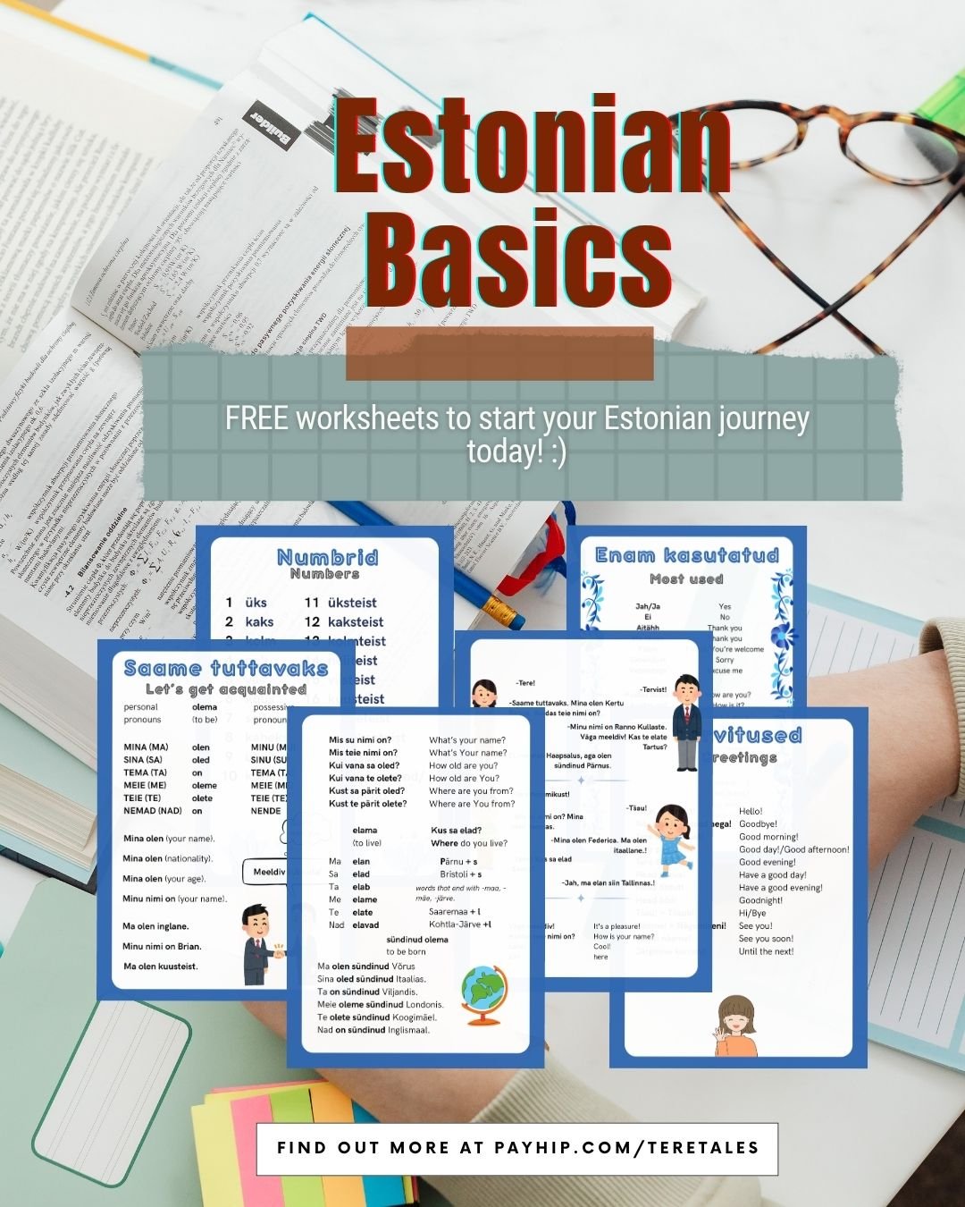 Start learning Estonian today - get your Estonian Basics for FREE and get started with learning ! Take first steps towards learning Estonian, no more procrastination! Suitable for adults and children.