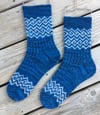 The pattern assumes familiarity with stranded colourwork, cabling, and basic cuff-down sock construction techniques. It will go a lot faster if you know how to work cables without a cable needle - I have not included a tutorial for this in the pattern since there are a number of good ones, such as this one, already available. The colourwork and cable patterns are currently provided only in charted form.