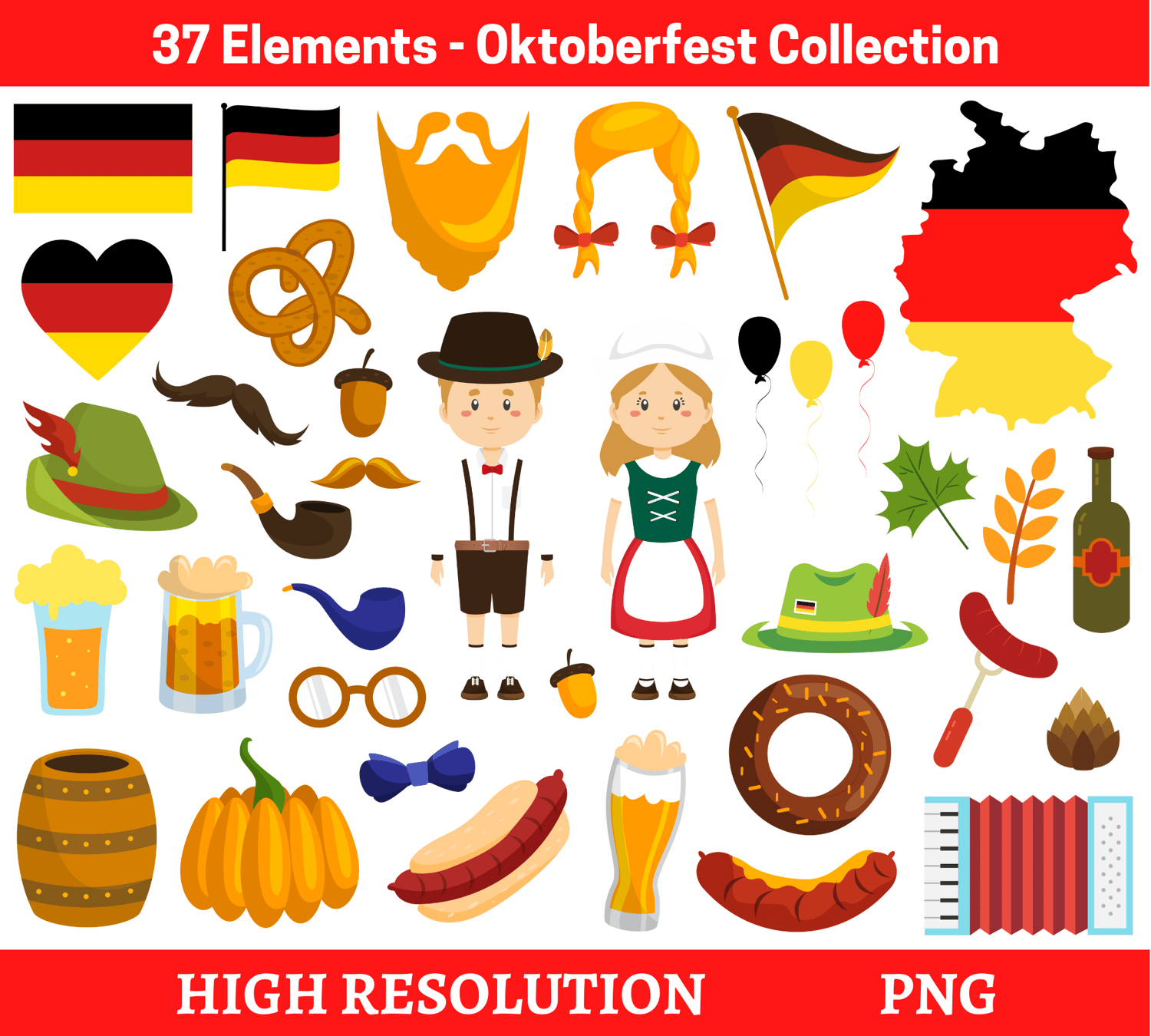 37 Elements - Oktoberfest Collection, hi-res digital CLIP ART (with transparent background).